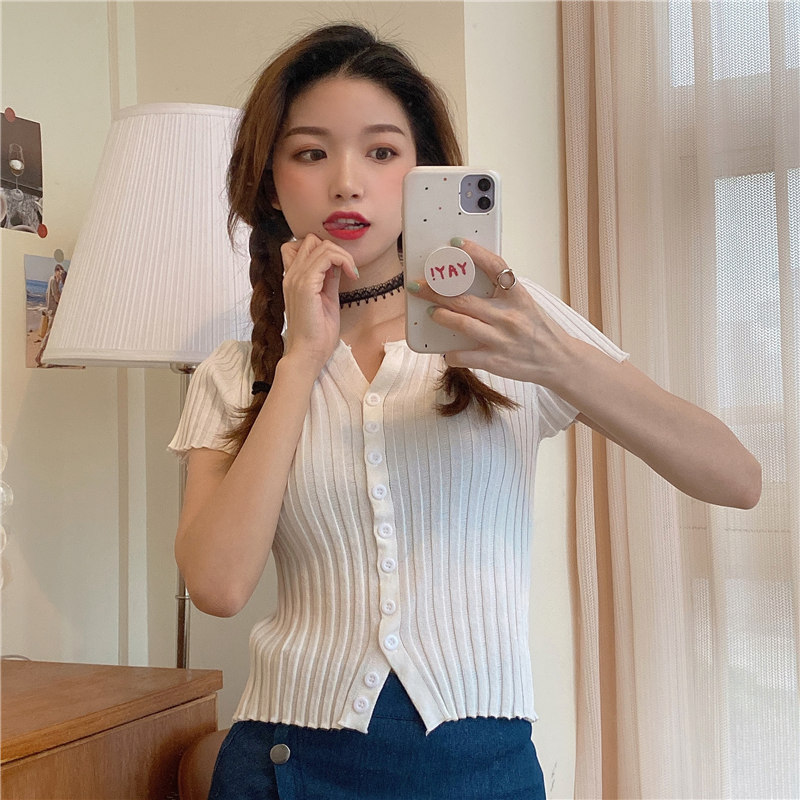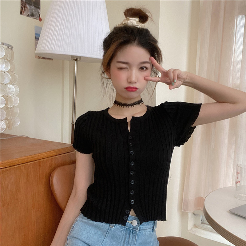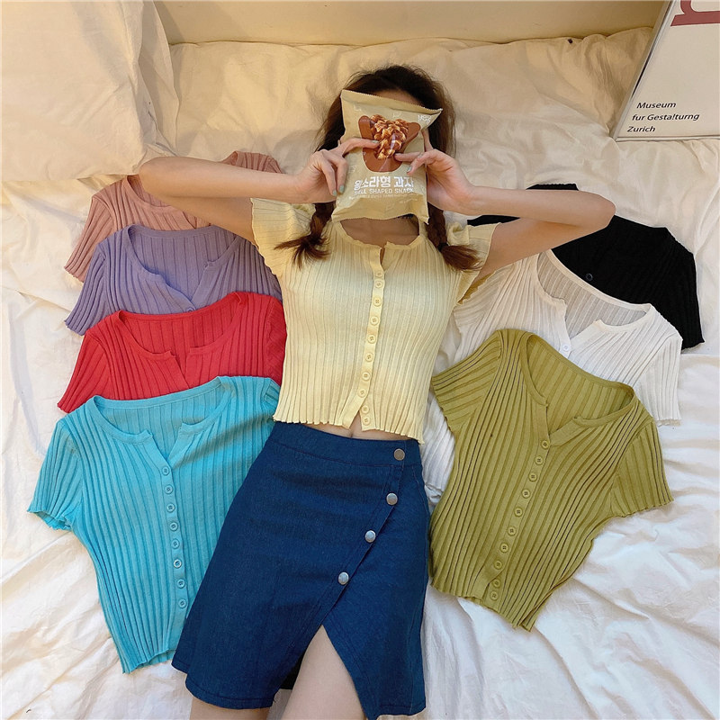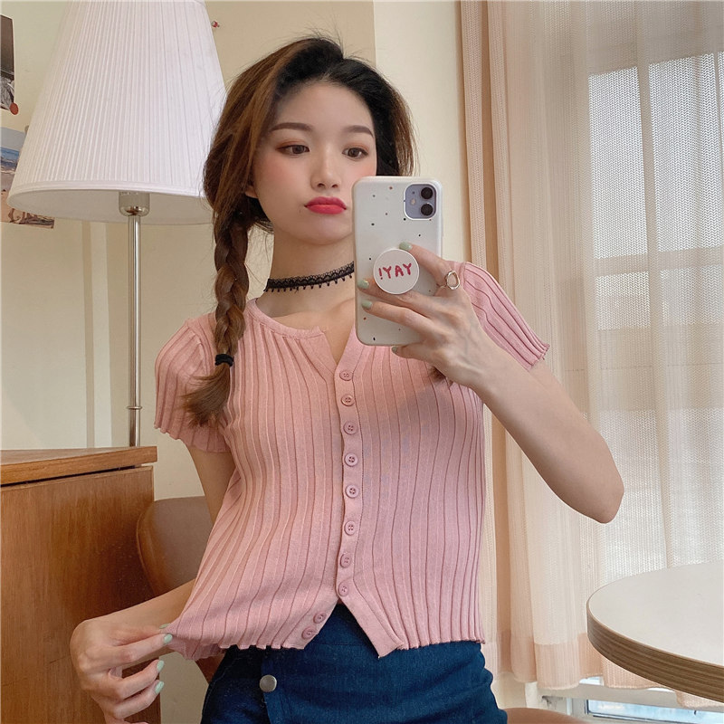 งานไหมพรมก็มานะคะ เป็นเสื้อแขนสั้นทรงพอดีตัวคอกลม แต่งกระดุมบริเวณคอ เสื้อทรงเป็นทรงแนบตัวไปเลยนะคะ บริเวณชายปล่อยไว้ดูเซอร์ๆ งานสวยมากค่ะ |