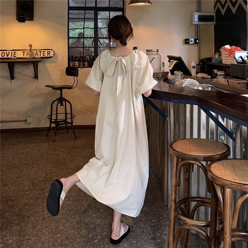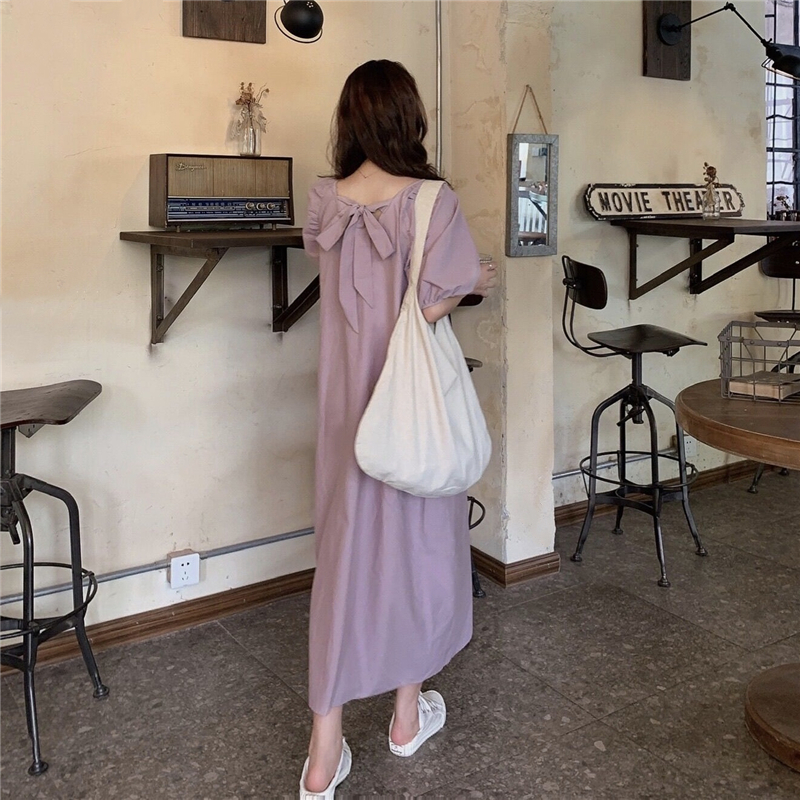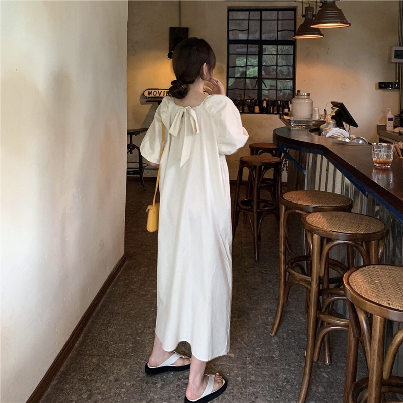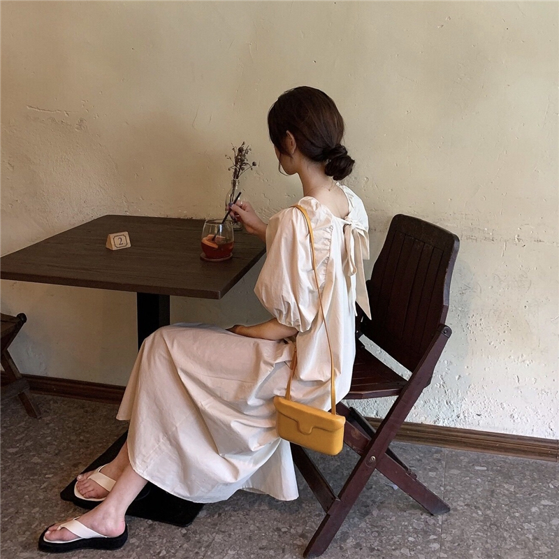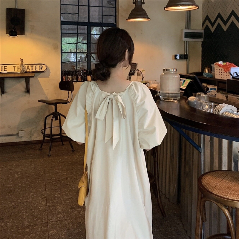 เดรสแขนตุ๊กตา เดรสคอกว้างโชว์ไหปลาร้าสวยๆ ตัวแขนจะพองเล็กน้อย ให้ความรู้สึกน่ารักเหมือนตุ๊กตา มีดีเทลผูกโบว์ตรงข้างหลัง โชว์ผิวเล็กน้อย ใส่แล้วดึงดูดมากค่า