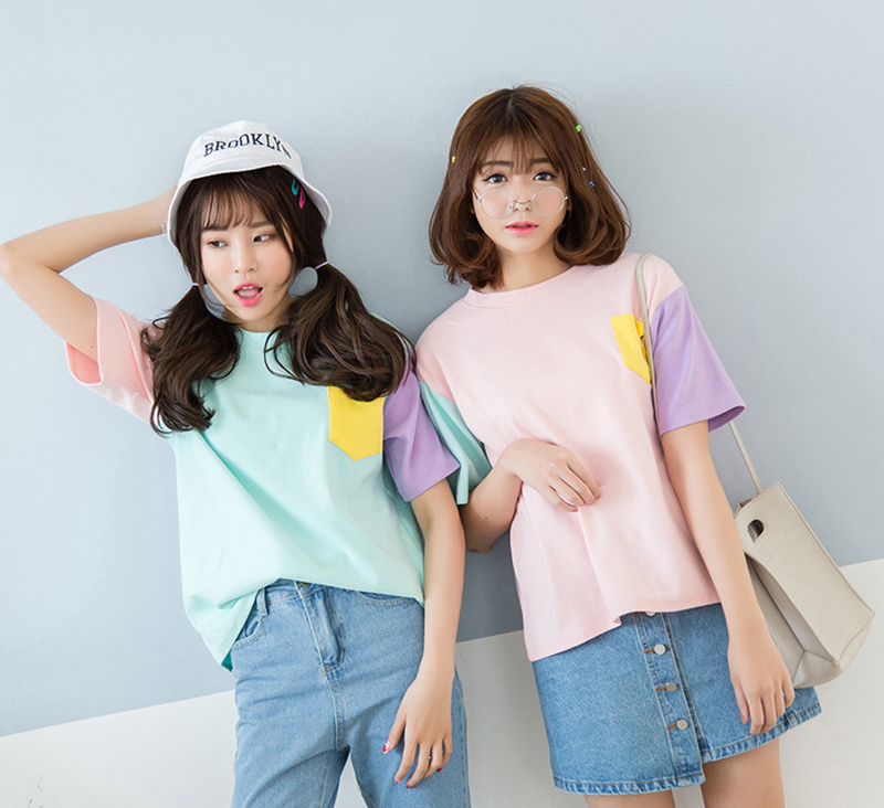 เสื้อยืดหลากสีแต่งสีพาสเทลสวยมากกก เก๋มากๆสำหรับเสื้อยืดตัวนี้ มีหลายสีในแต่ละส่วน ใครเห็นเป็นต้องหันมอง ถ่ายรูปออกมาโดดเด่นมากๆค่า |