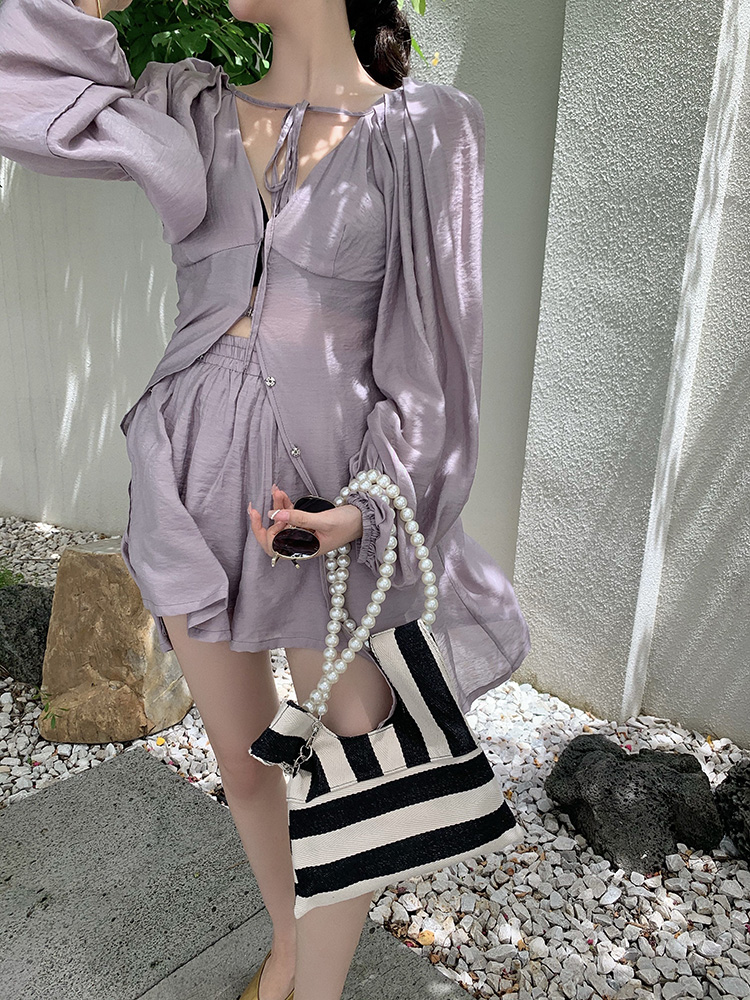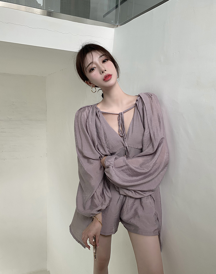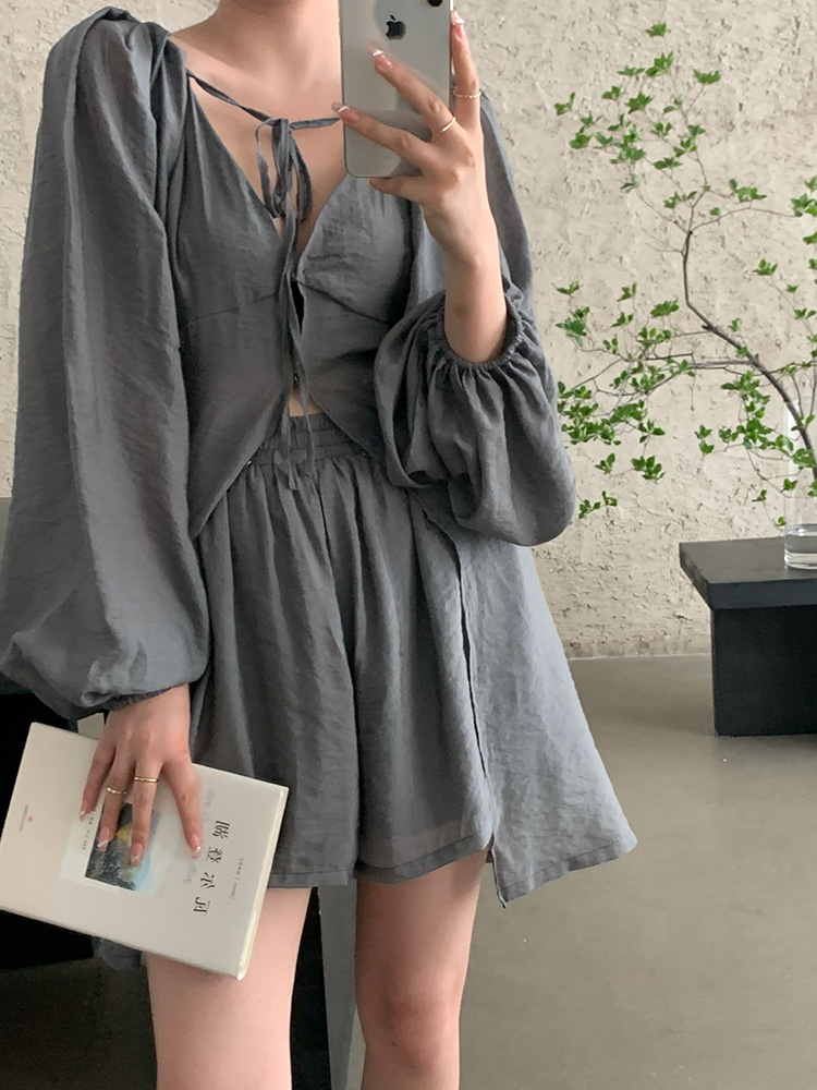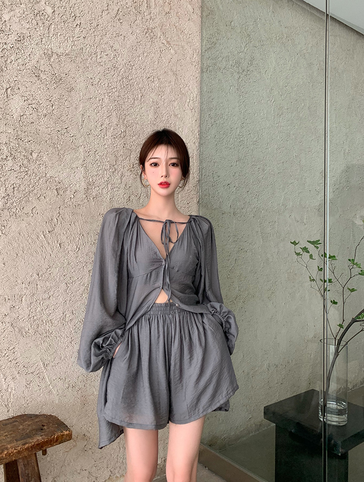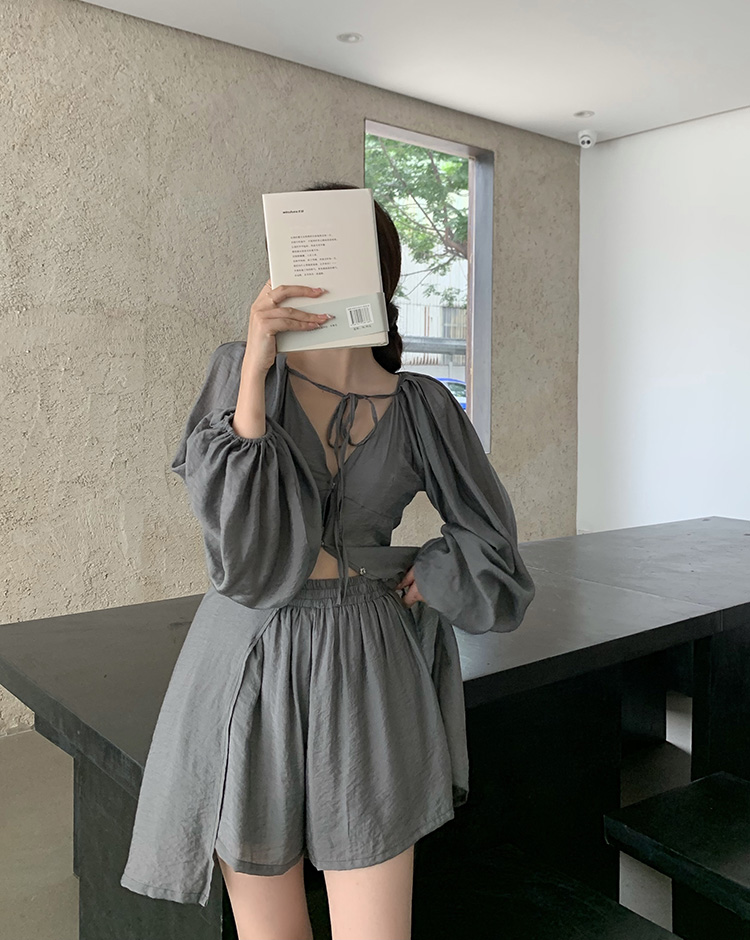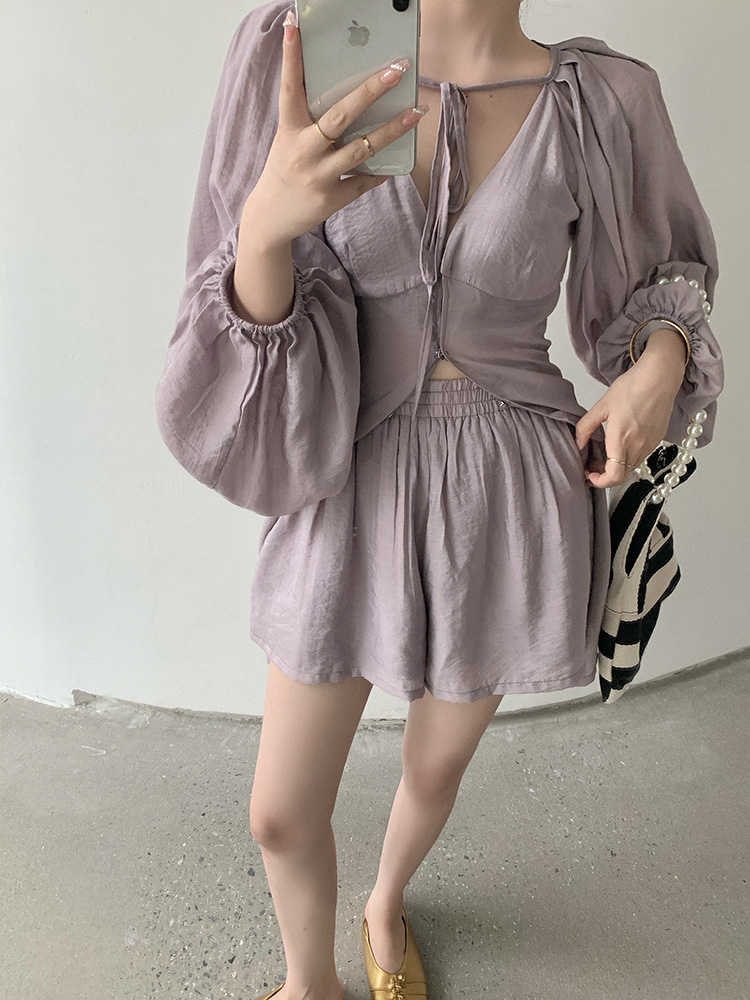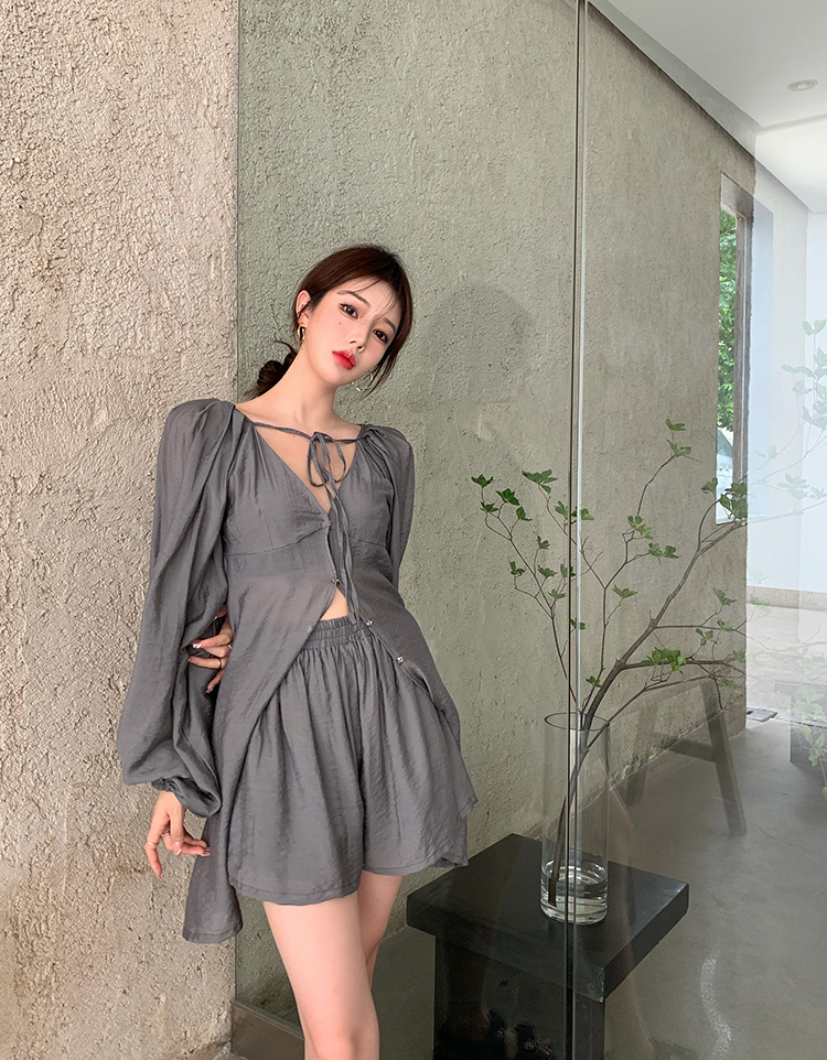 เซตเสื้อแขนยาว กางเกงขาสั้น ผ้าพริ้วใส่สบายบางๆ ได้สองชิ้นไปเลยค่า ใส่แมทช์เข้าชุด หรือจับแมทช์แยกกันก็ได้นะคะ คุ้มมากๆ |