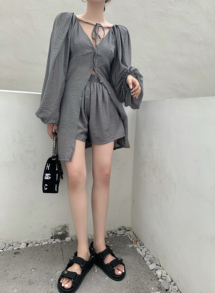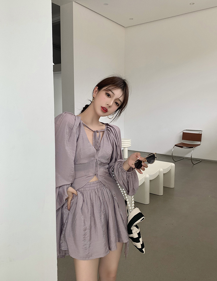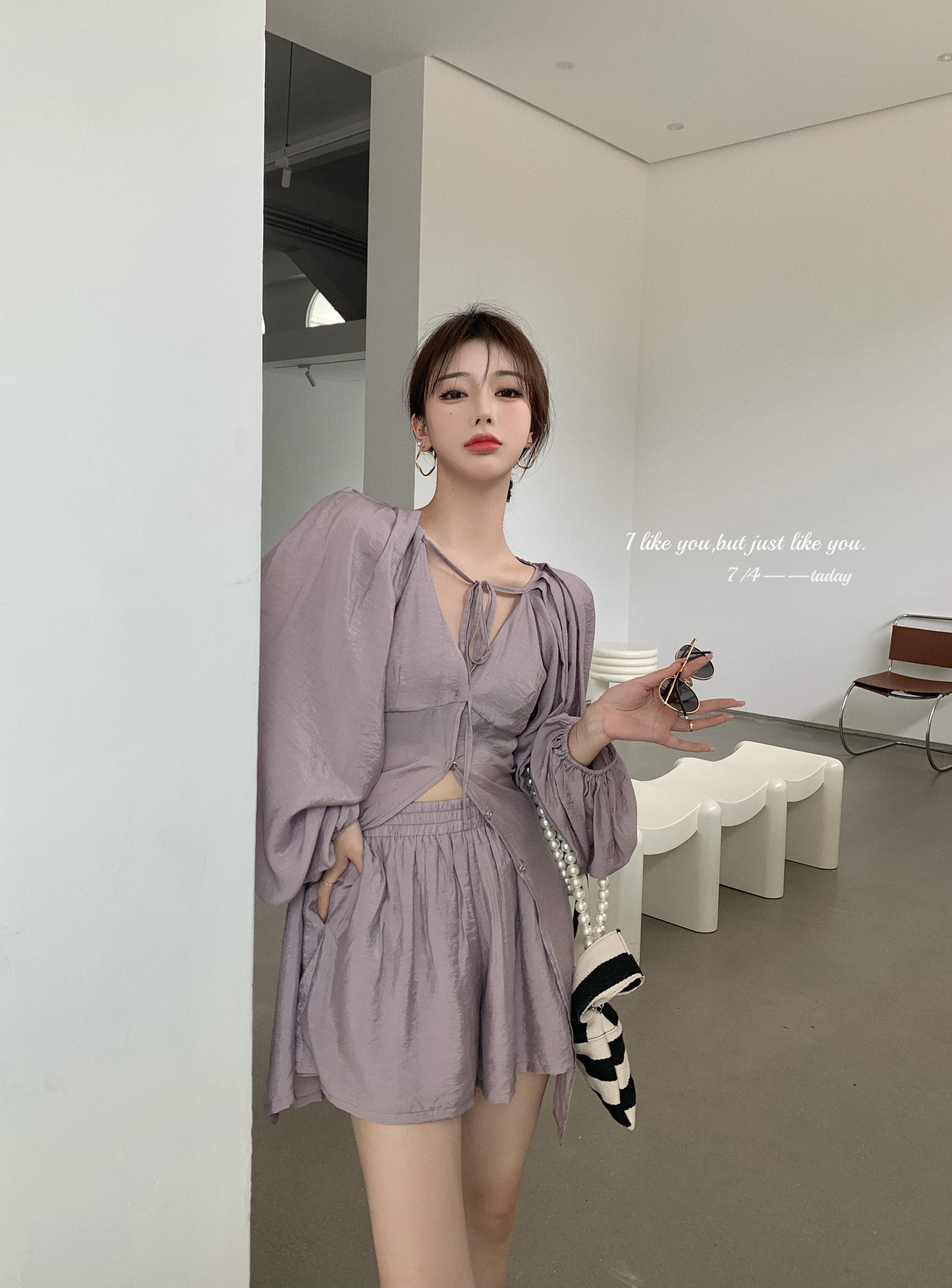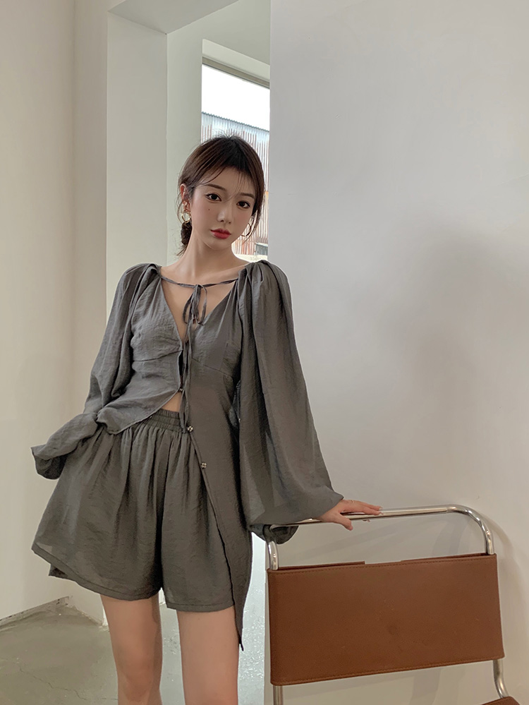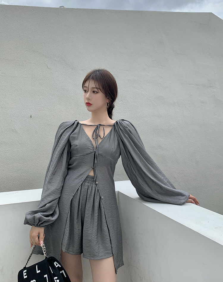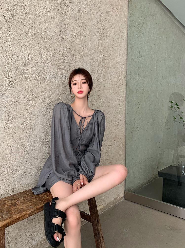 เซตเสื้อแขนยาว กางเกงขาสั้น ผ้าพริ้วใส่สบายบางๆ ได้สองชิ้นไปเลยค่า ใส่แมทช์เข้าชุด หรือจับแมทช์แยกกันก็ได้นะคะ คุ้มมากๆ |