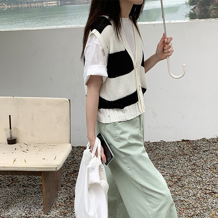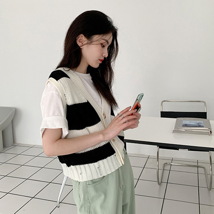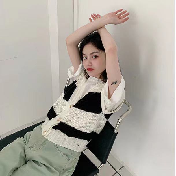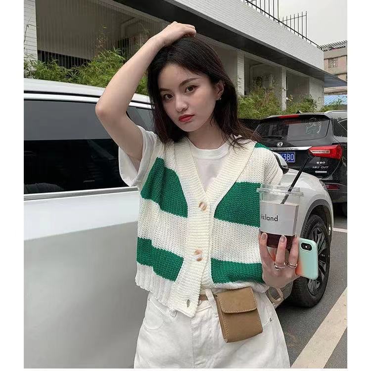 เสื้อกั๊กไหมพรมแขนกุด น้องเป็นคอวีแต่งกระดุมเก๋ๆ เม็ดใหญ่ใช้งานได้จริงรุ่นนี้แต่ง detail ช่วงชายเสื้อเป็นงานขาดๆ เซอร์ๆ ผ้าทอลายสวย เนื้อนิ่มบางๆ ใส่กับอากาศบ้านเราได้แน่นอนค่ะ ไม่ต้องกลัวร้อนเลย จะแมตช์คู่กับเสื้อเชิ้ตหรือเสื้อยืดก็เข้ากันนะคะ ได้ทั้งสองสีเลย |