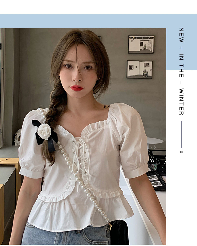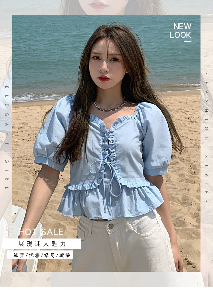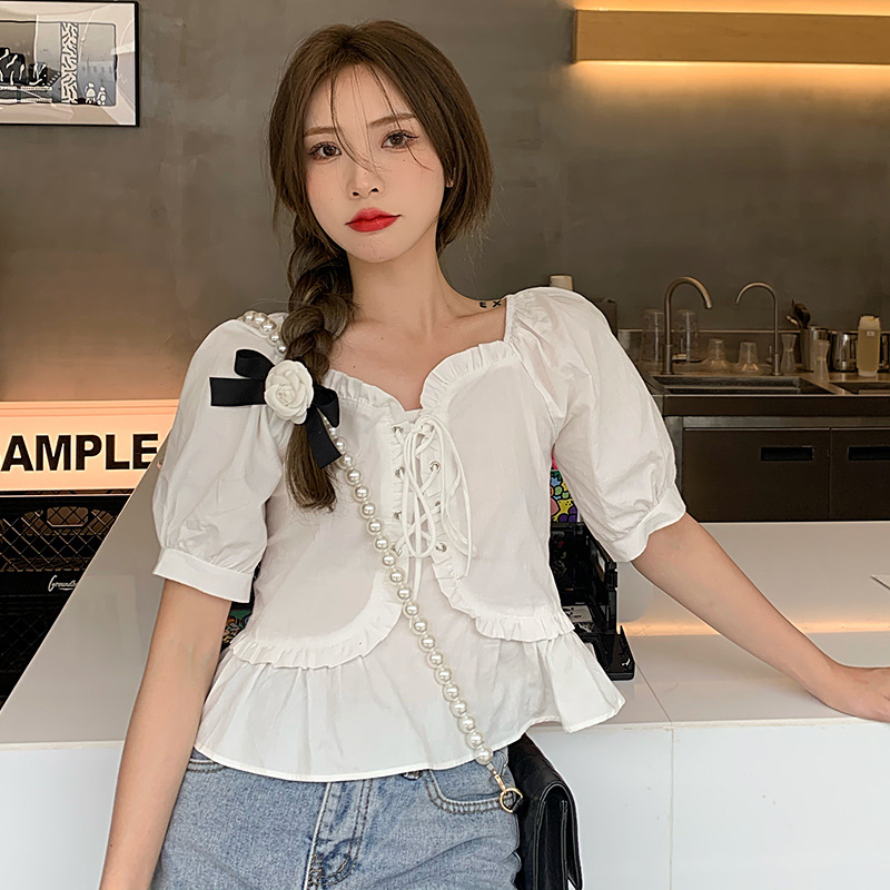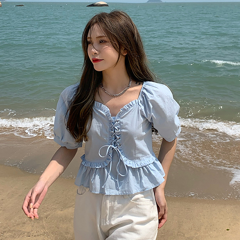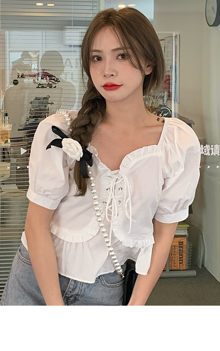 เสื้อแขนสั้นแต่งสายผูก ผ้าคอตตอนเนื้อดีใส่สบายมาก รุ่นนี้ใส่ออกมาแล้วสวยมากๆค่ะจะแมทกับยีนส์หรือกระโปรงก็เข้ากันค่า