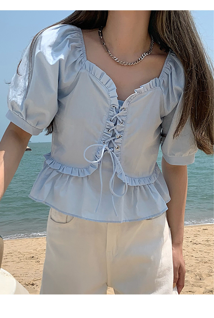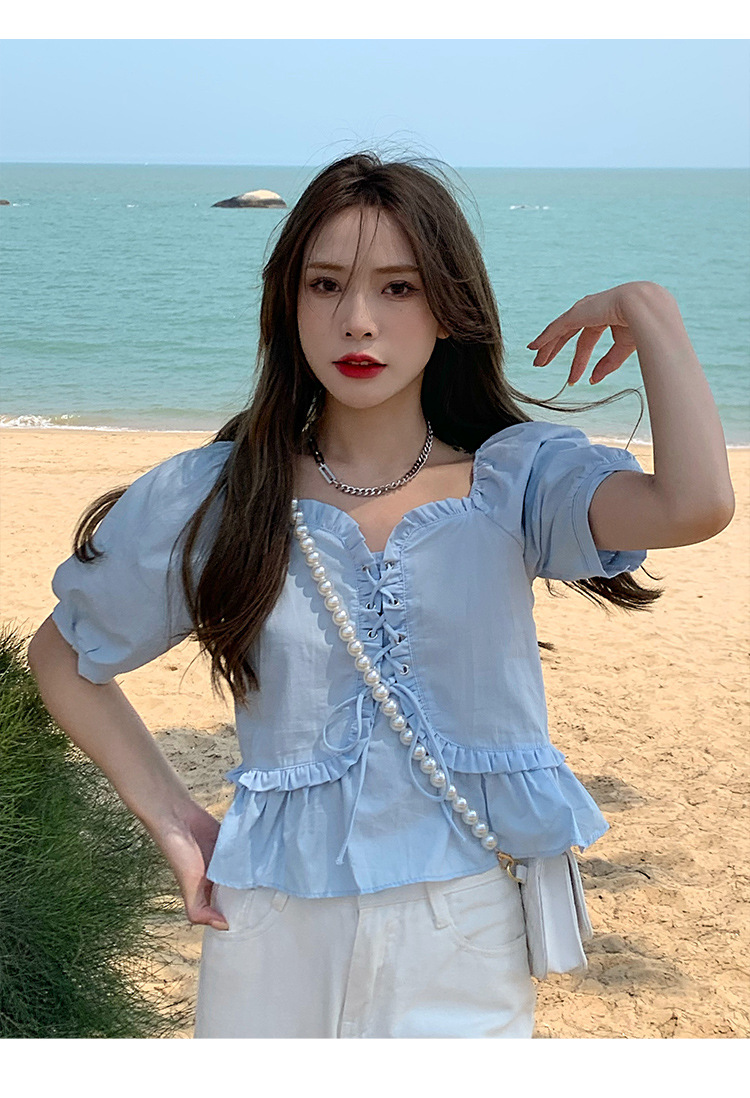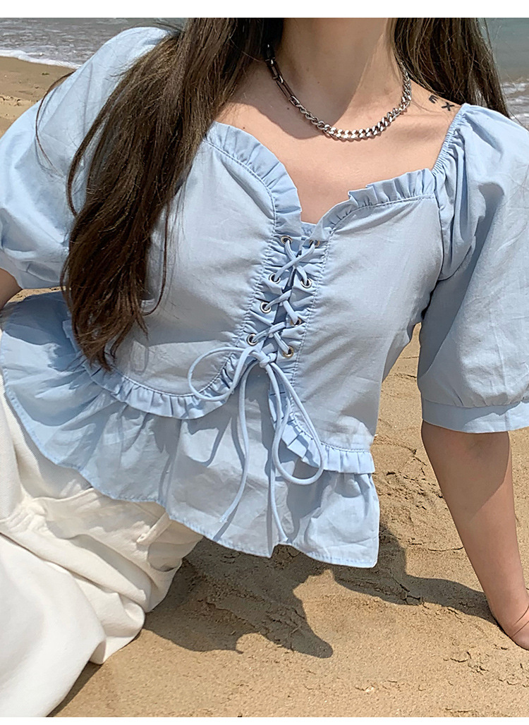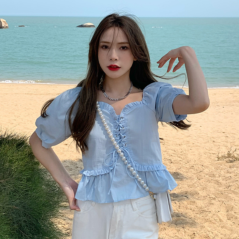 เสื้อแขนสั้นแต่งสายผูก ผ้าคอตตอนเนื้อดีใส่สบายมาก รุ่นนี้ใส่ออกมาแล้วสวยมากๆค่ะจะแมทกับยีนส์หรือกระโปรงก็เข้ากันค่า