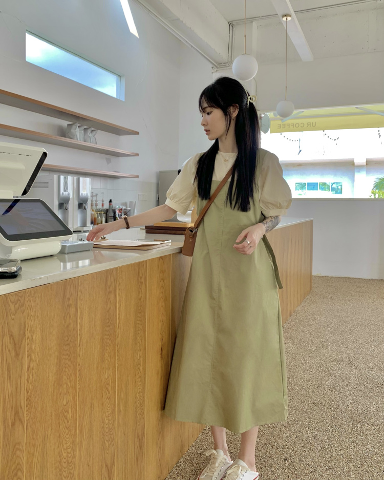 น้องรุ่นนี้เป็นเอี๊ยมนะค่า สีเขียวนมๆ มาพร้อมสายผูกเอวเอาไว้ปรับความเข้ารูปได้ งานสวย ผ้าเนื้อนิ่มใส่สบาย แมทช์กับเสื้อสีอะไรก็เข้ากันค่า ผ้าเบาสบาย ใส่ไม่ร้อน จะใส่เที่ยว หรือใส่ทำงาน ก็ปัง |