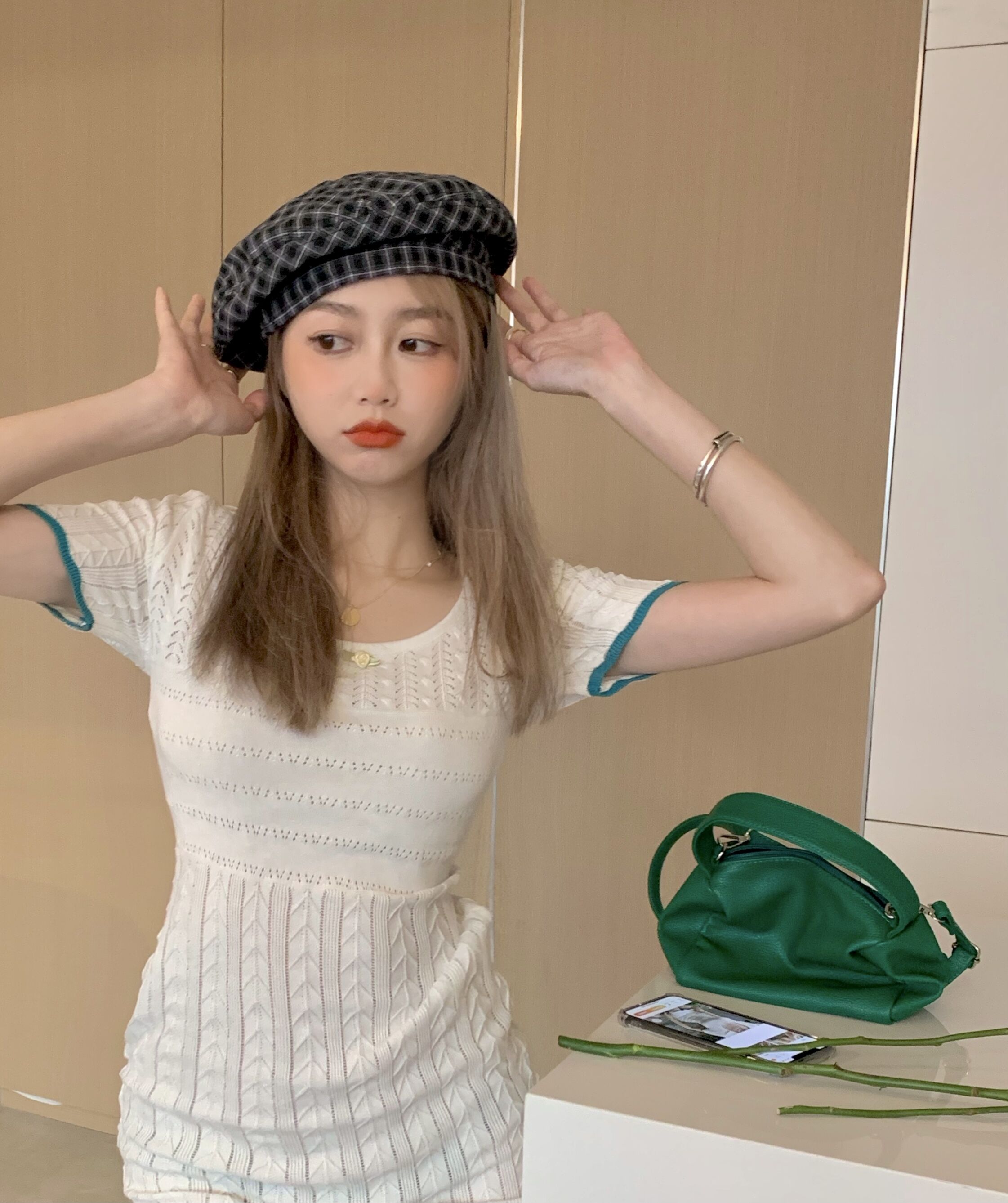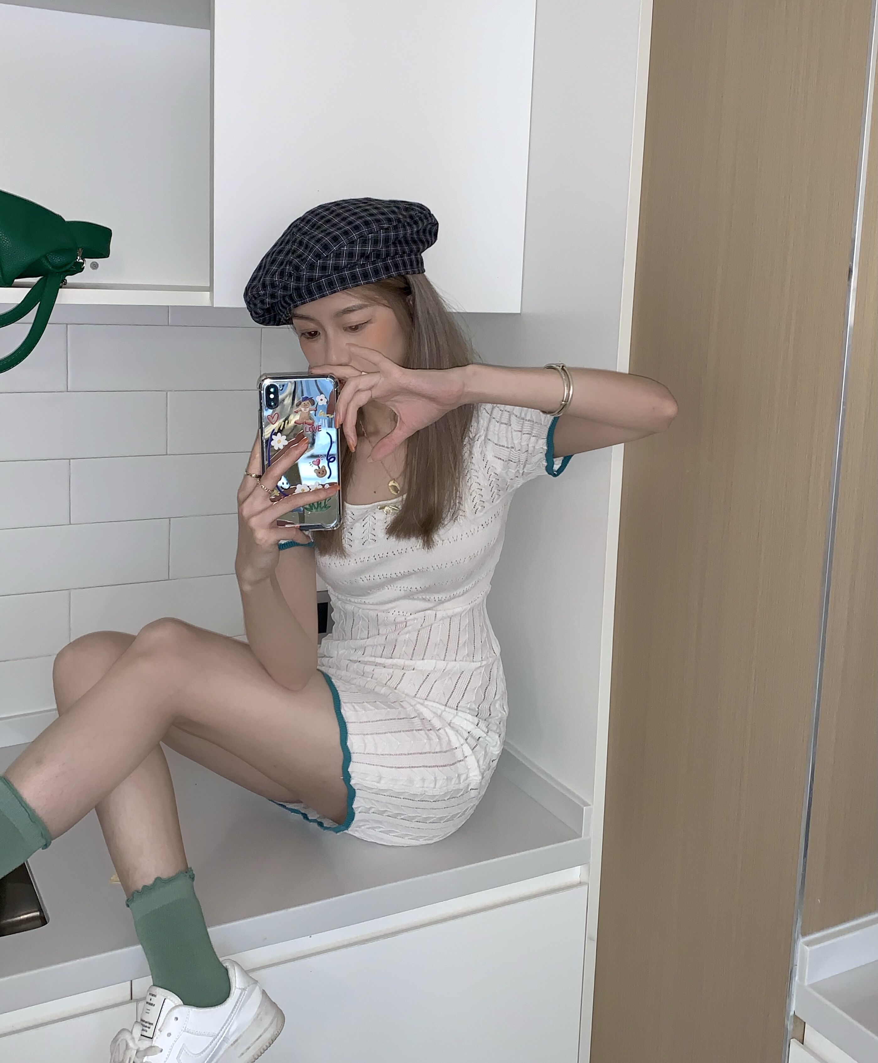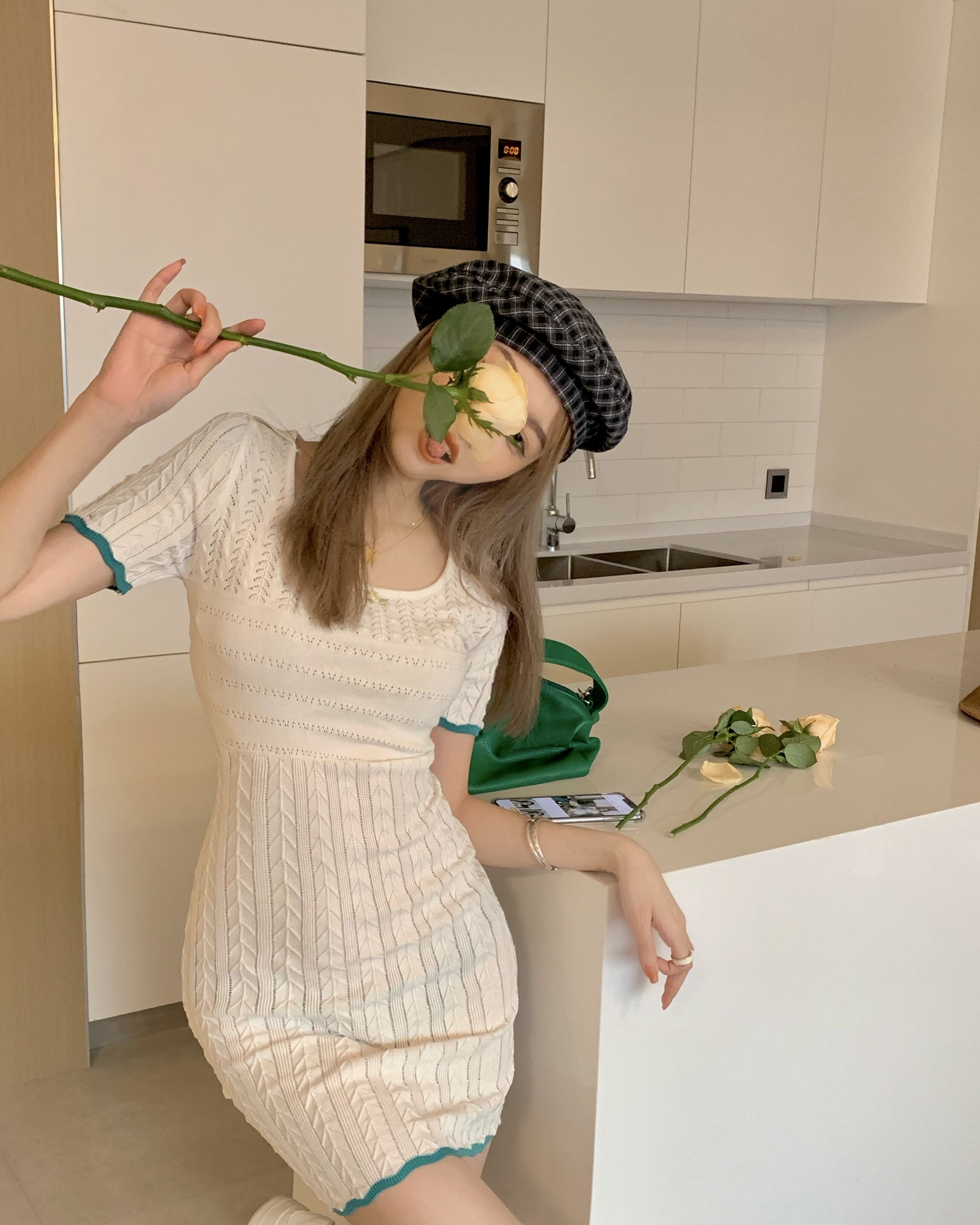 เดรสคอแลมแขนสั้นทรงเข้ารูปสีขาวงานสวย น้องจะเป็นเนื้อผ้านุ่มๆลื่นๆค่ะ ใส่แล้วน่ารักมากก |