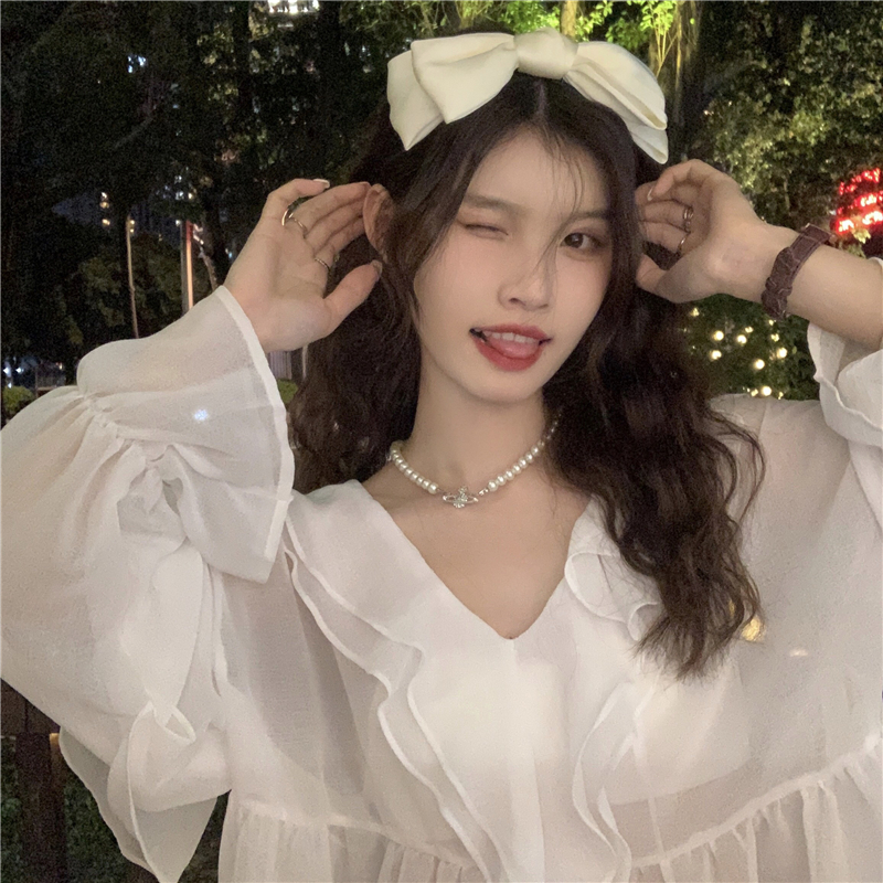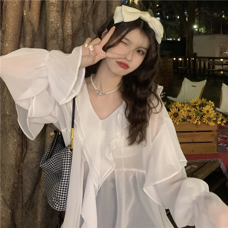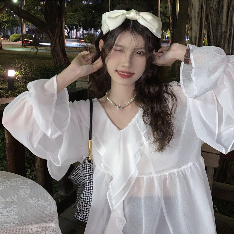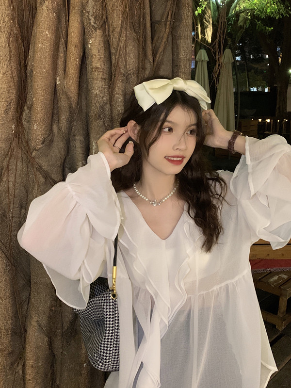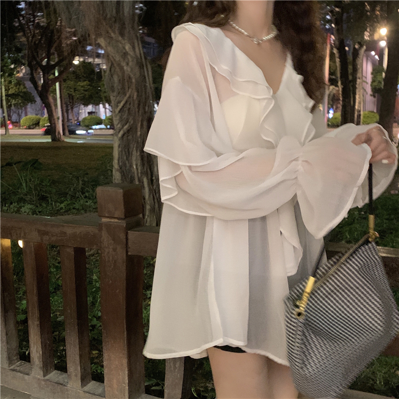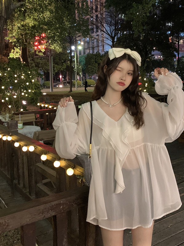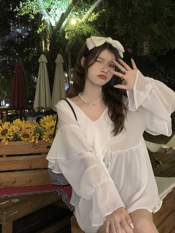 เสื้อแขนยาวผ้าชีฟองบางๆพริ้วๆ ทรงสวยมาก รุ่นนี้ใส่แมทช์กับกางเกงหรือกระโปรงก็ดูดีค่ะ รุ่นนี้เนื้อผ้าใส่สบายมากกก ทรงโอเวอร์ไซด์ ใส่หลวมๆคูลๆ เริ่ชๆไปค่ะ |