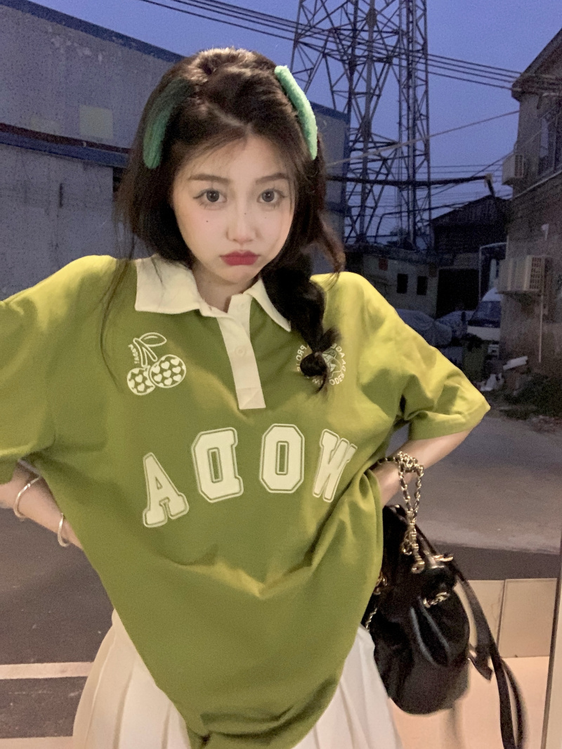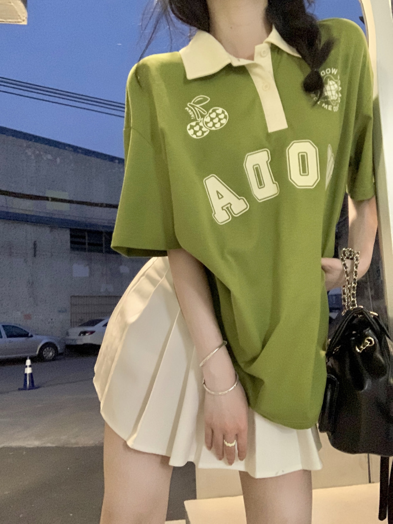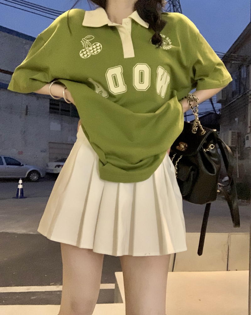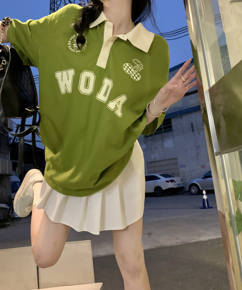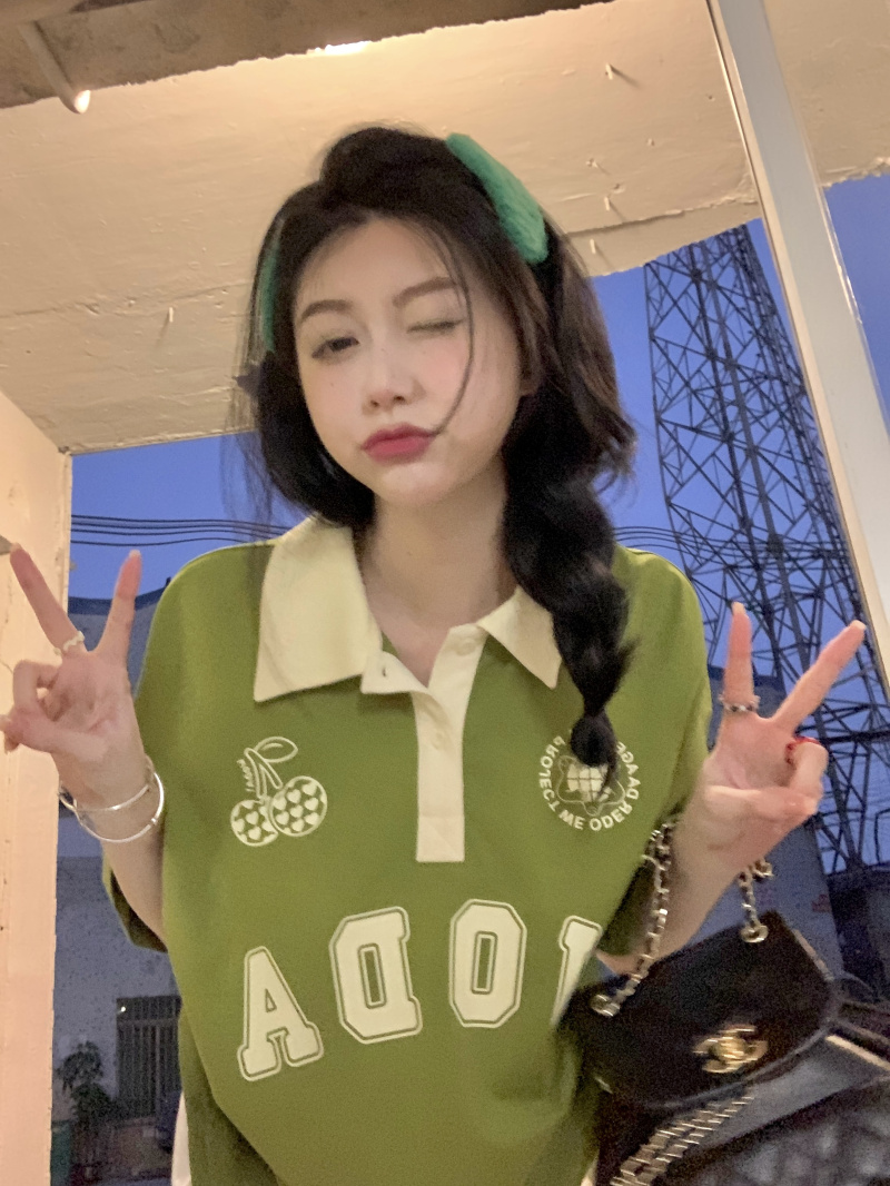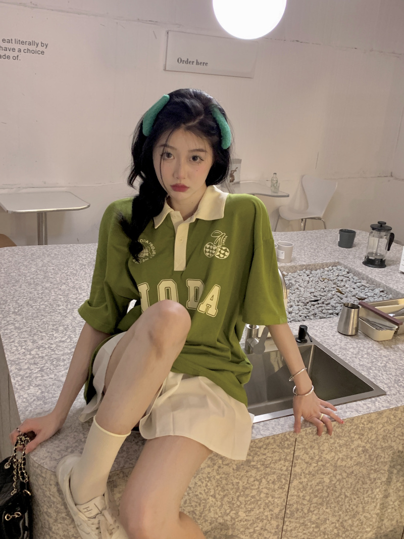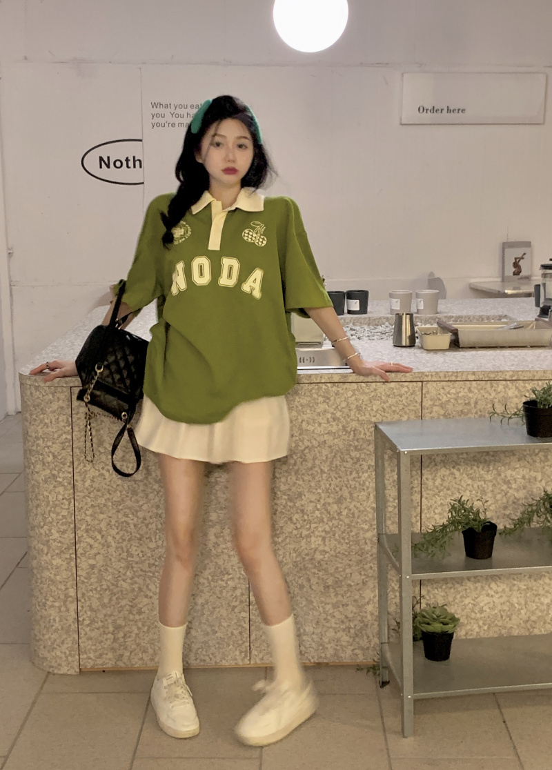 ให้ฟีลสาวสปอร์ต ใส่ง่าย ชนะใสๆไปเลยแม่ มาแม่มาเสื้อยืดโอเวอร์ไซด์สีเขียว เนื้อผ้าใส่สบาย ด้วยความที่เป็นเสื้อโอเวอร์ไซด์ใส่ยังไงก็ไม่อึดอัด ช่วยขับผิวมากเว่อร์ใส่แล้วดูเปล่งประกายด้วยพลังของสีเขียวอ่ะเนาะ เสื้อตัวนี้เป็นเสื้อคอปกสีขาว ช่วงลำตัวเป็นสีเขียว มีกรียนตัวหนังสือสีขาวติดบริเวณเสื้อเพิ่มความเป็นลวดลาย ให้ฟีล เป็นสาวสปอร์ต ดูเป็นคนรักกีฬา จะใส่เชียร์กีฬาอยู่ที่บ้าน ไปทำกิจกรรมนอกบ้าน จะใส่เป็นชุดนอน หรือไปจิบคาแฟในร้านคาเฟ่ก็สวยปัง มิกซ์แอนด์แมตซ์กับกางเกงก็ได้ หรือจะใส่กระโปรงก็ดี แมตซ์ง่ายมาก มีติดตู้ไว้ ใช้ได้ทุกโอกาส