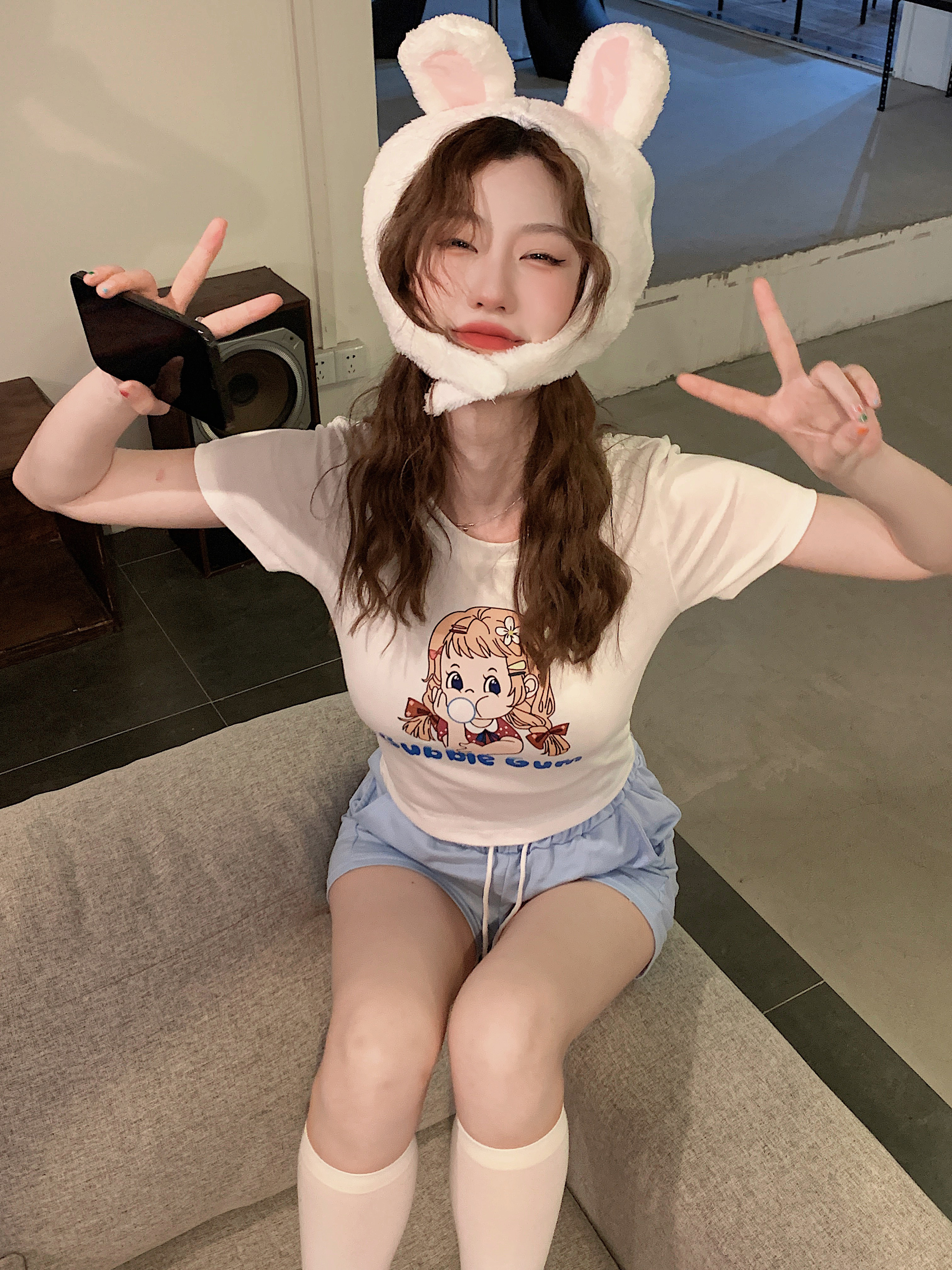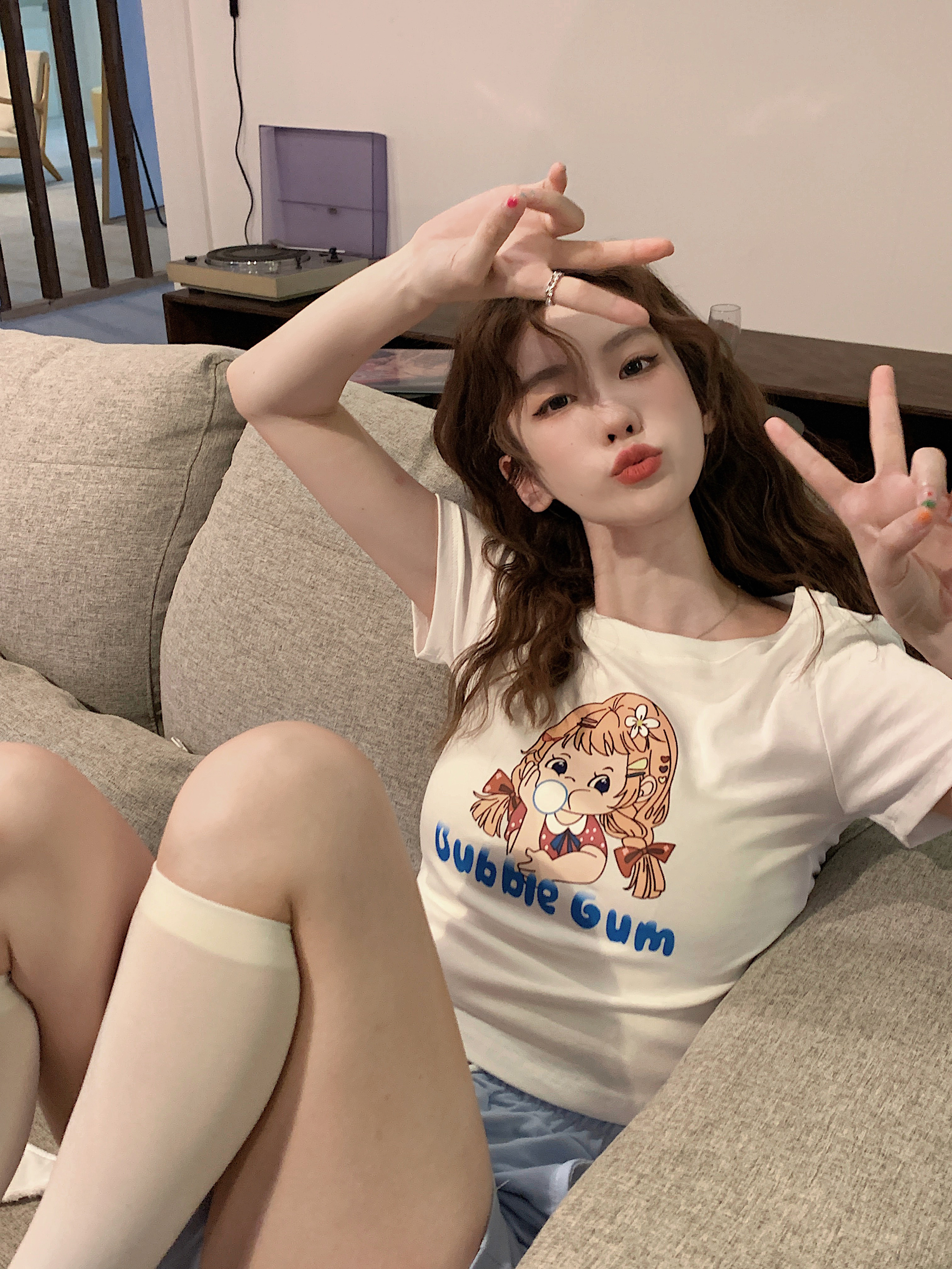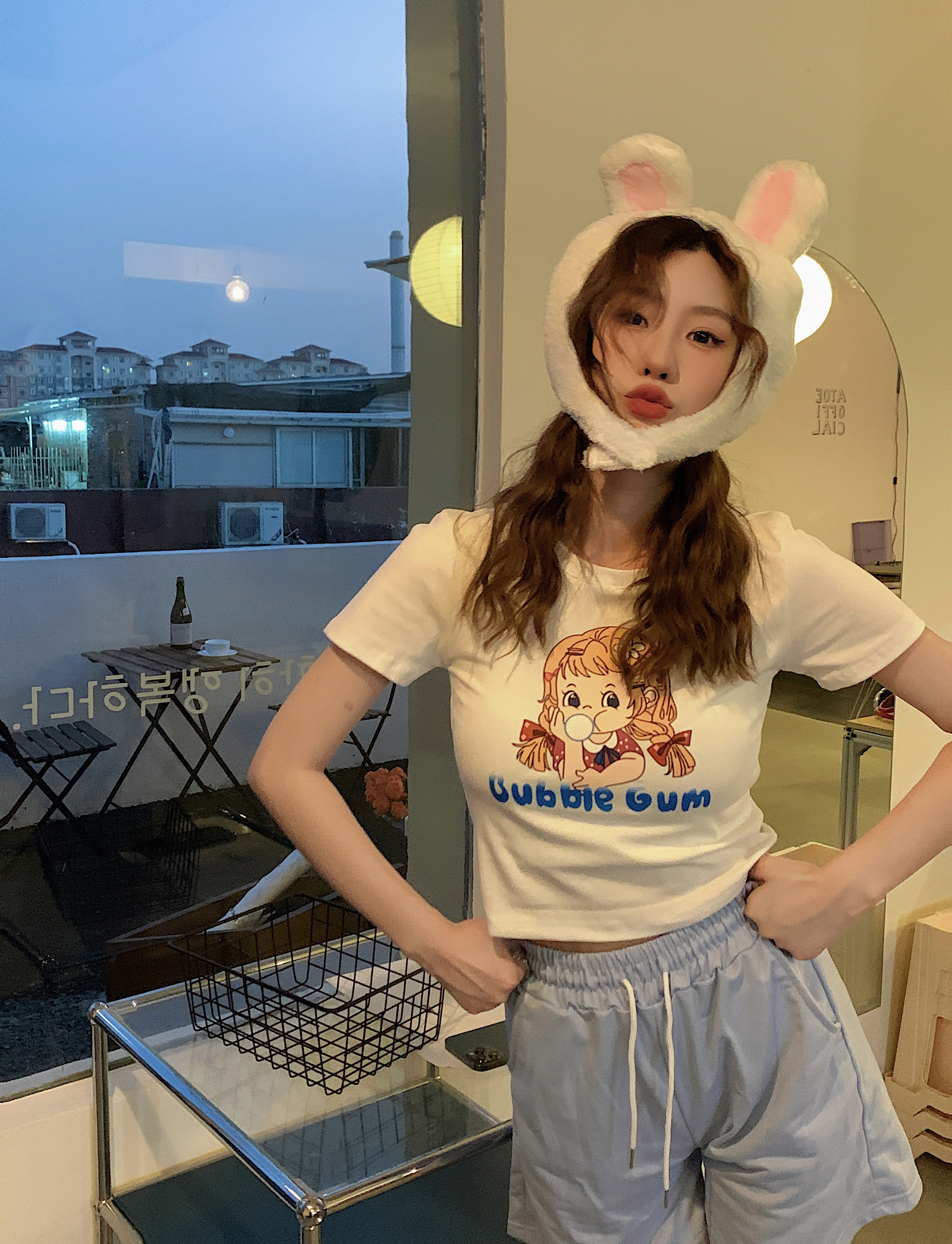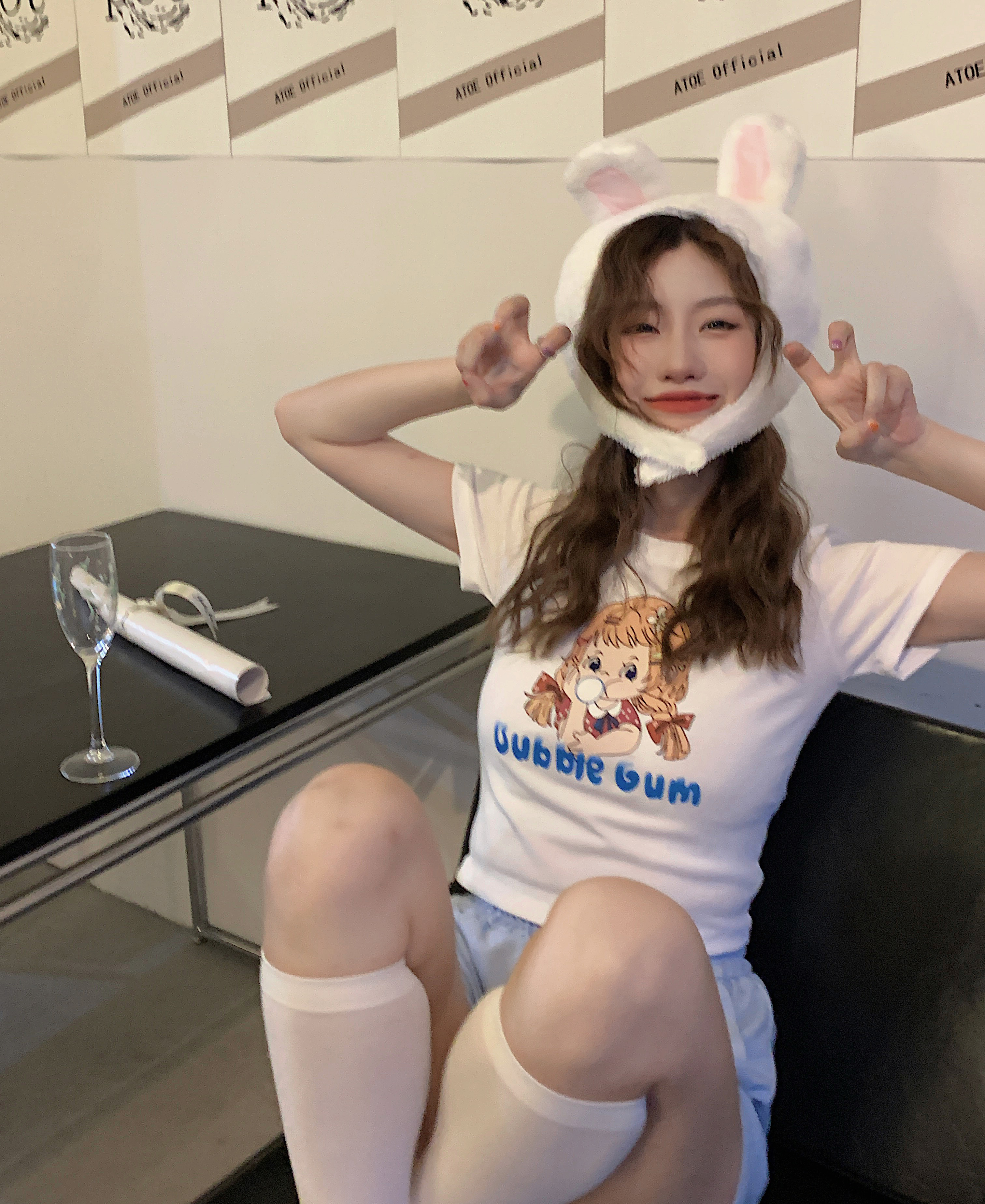เสื้อตัวนี้คือน่ารักมาก น้องเป็นเสื้อยืดแขนสั้นสีขาวครีม คอกลม ที่สกรีนลายเป็นรูปเด็กผู้หญิงที่เคี้ยวหมากฝรั่งอยู่ เป็นการเพิ่มดีเทลให้แก่เสื้อยืด โดยรูปของเด็กผู้หญิงใช้สีสันที่มีความหลากหลายและดูเข้ากันได้โดยใช้สีแดงตุ่นๆ สีน้ำตาลอ่อน สีน้ำเงิน และสีไข่ ทั้งสกรีนตัวอักษรน่ารักๆสีฟ้าว่า bumble gum เสื้อตัวนี้น้องมิกซ์แอนด์แมทช์ง่ายมาก ใส่กับกางเกงขาสั้นตัวโปรดอยู่บ้านในวันชิลๆก็ได้ หรือจะใส่กับกางเกงยีนส์ไปเที่ยวนอกบ้านก็ดี ปังไม่ไหวแล้วแม่ คุ้มขนาดนี้ต้องมีแล้วไหม |