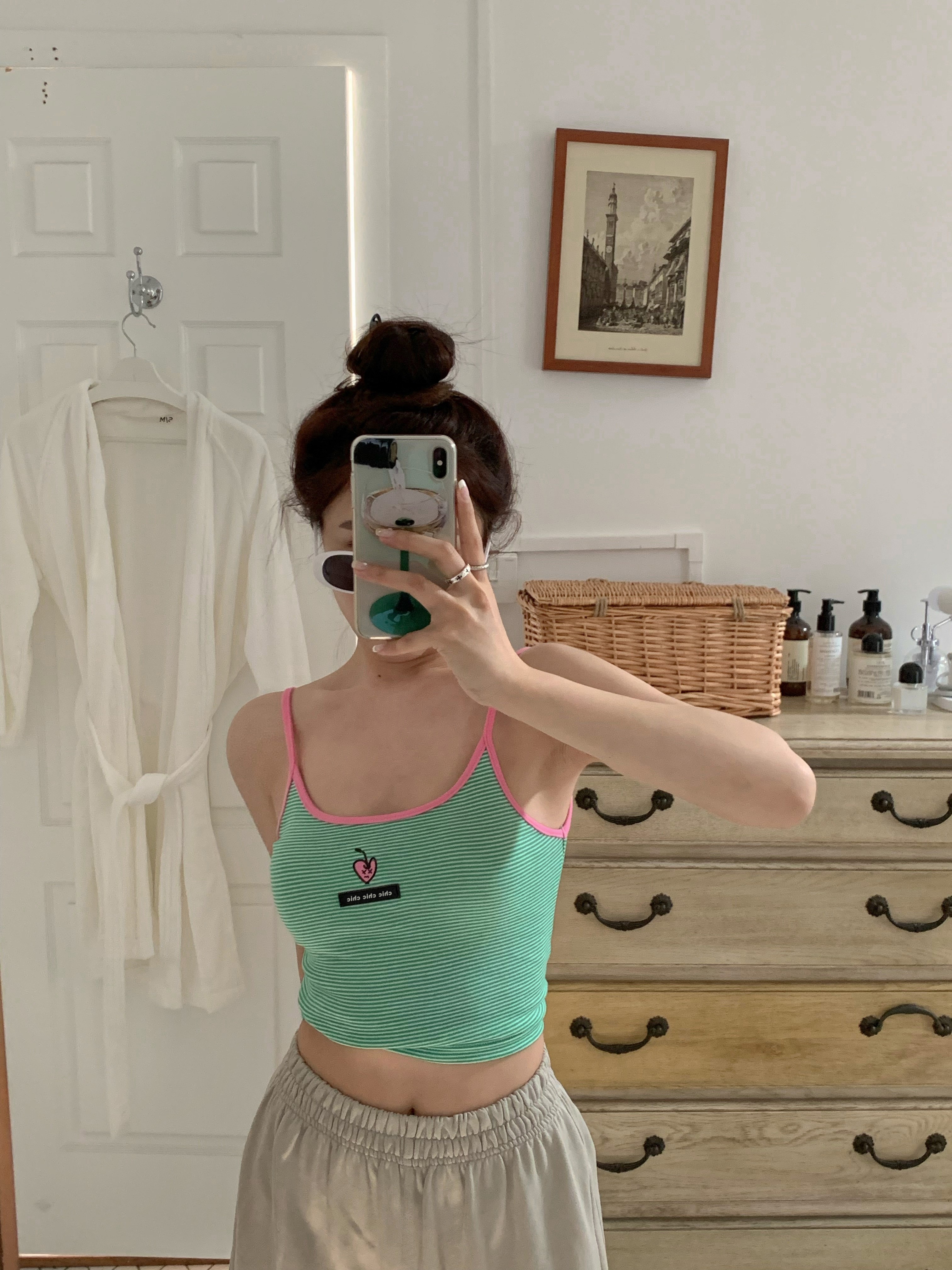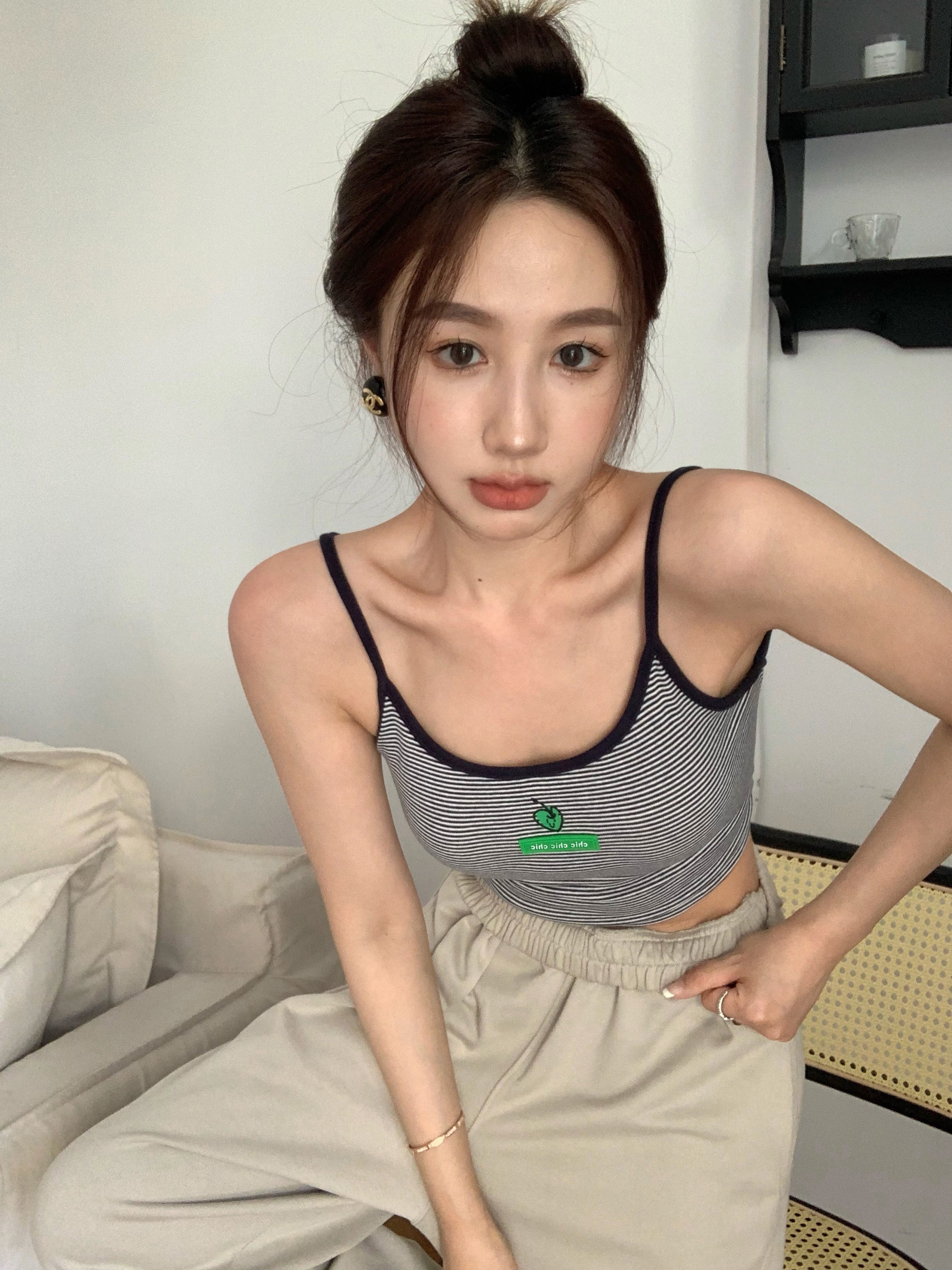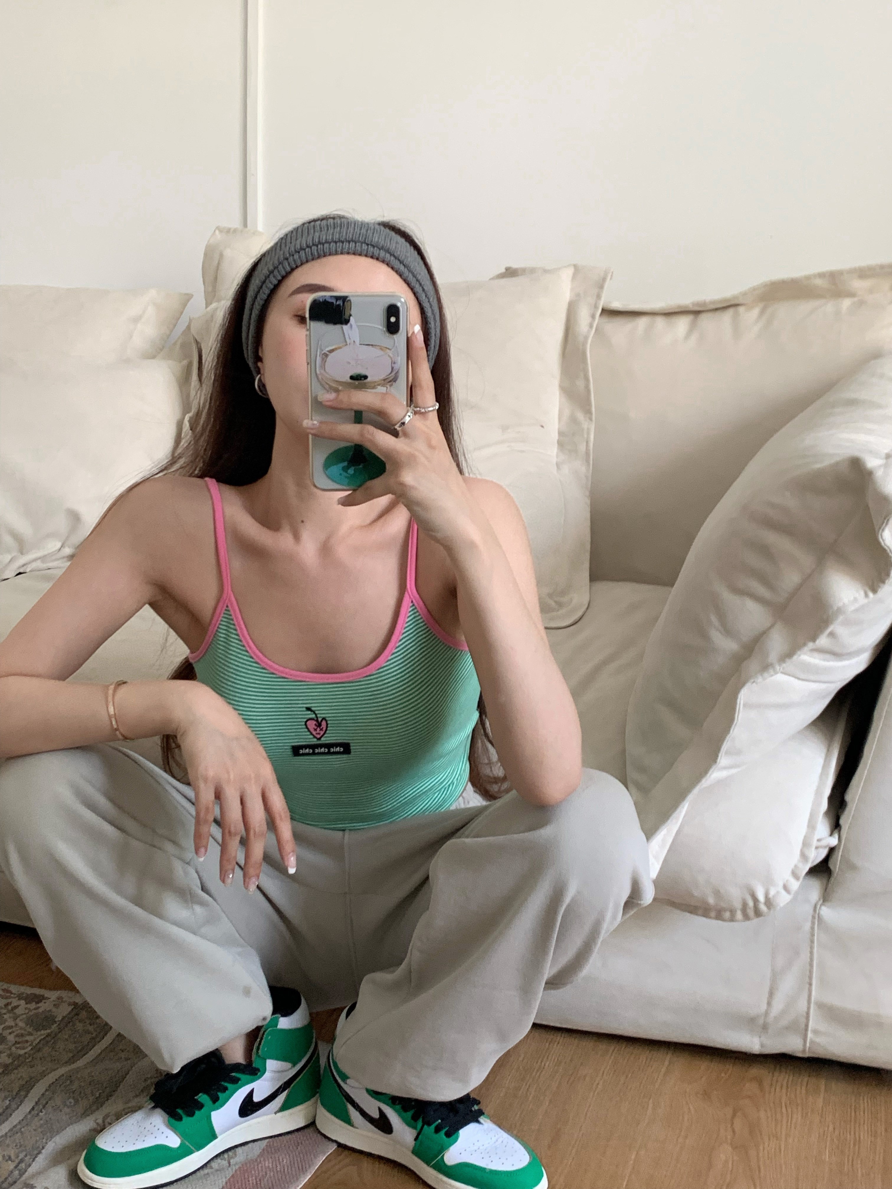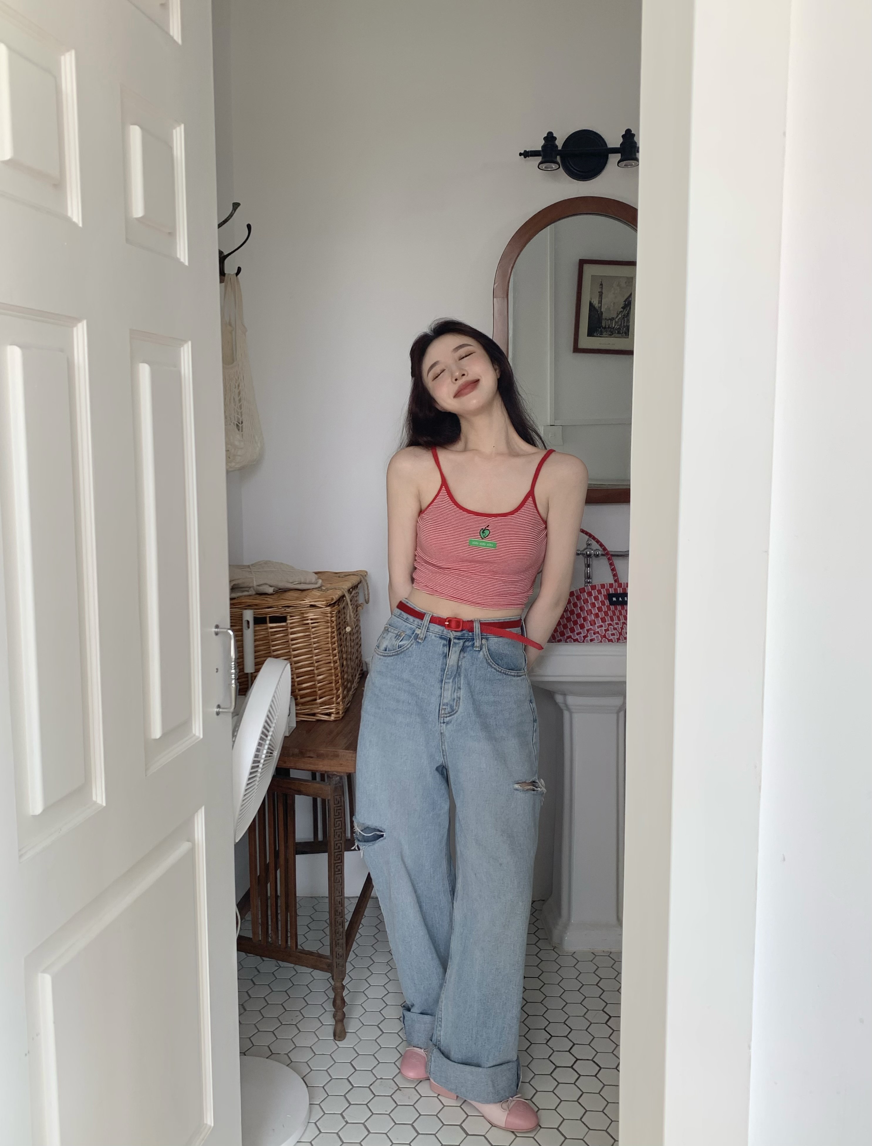 งานตัวนี้บอกเลยว่าคุ้มมาก จะใส่อยู่บ้านก็ได้ จะใส่เที่ยวก็ดี ช่วงนี้สาววัยรุ่นนิยมใส่ชุดเสื้อสายเดี่ยวคู่กับกางเกงยีนส์ เนื่องจากอากาศที่ร้อนระอุ การใส่เสื้อสายเดี่ยวจึงถือว่าตอบโจทย์ โดยเสื้อตัวนี้จะมีลายสกรีนเป็นผลไม้รูปหัวใจและลายของเสื้อจะเป็นลายทางขาวสลับกับสีสัน สามารถใส่แมทช์ได้ง่ายมาก แค่ใส่กับกางเกงยีนส์ก็สามารถดูดีได้ จะใส่ไปนอกบ้านก็ให้ลุคเป็นสาวเท่ห์ จะใส่อยู่บ้านในวันชิลๆก็ยังได้ เริ่ดนะแม่่