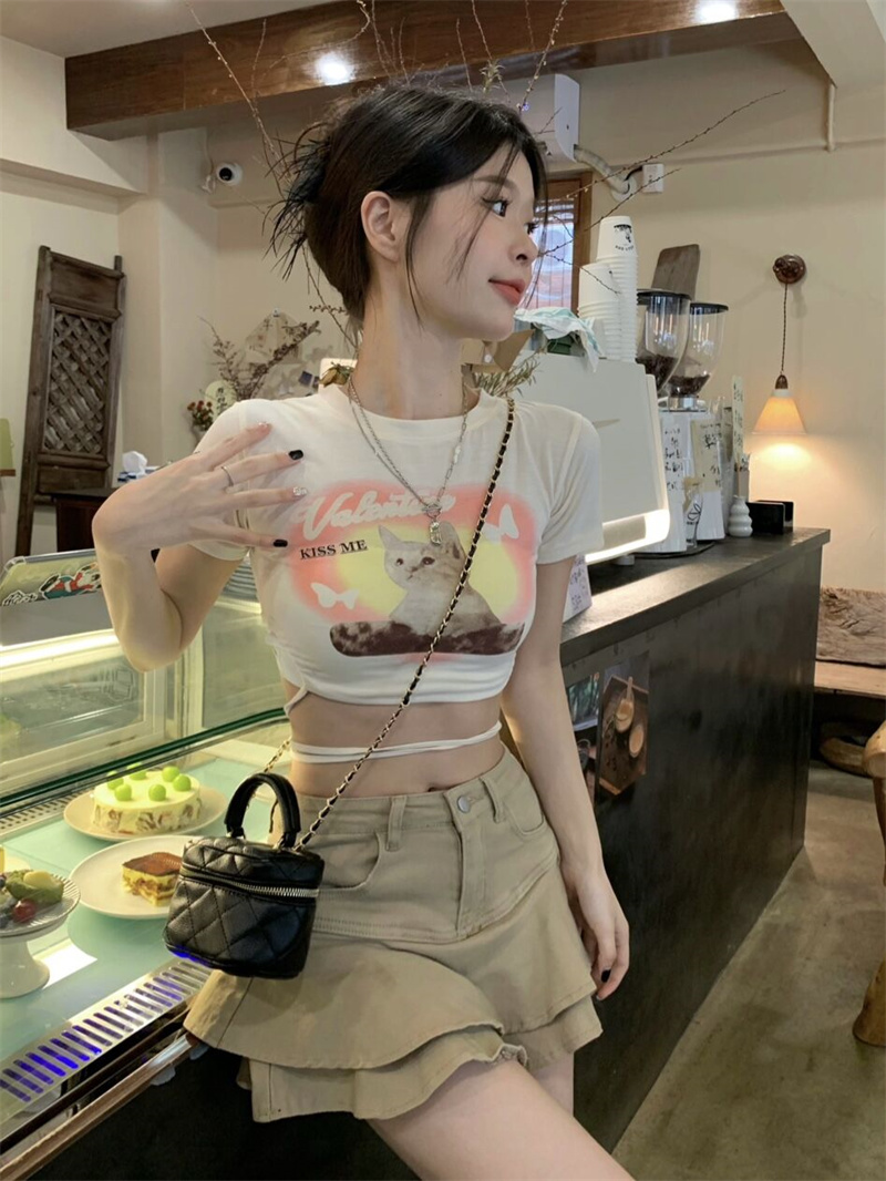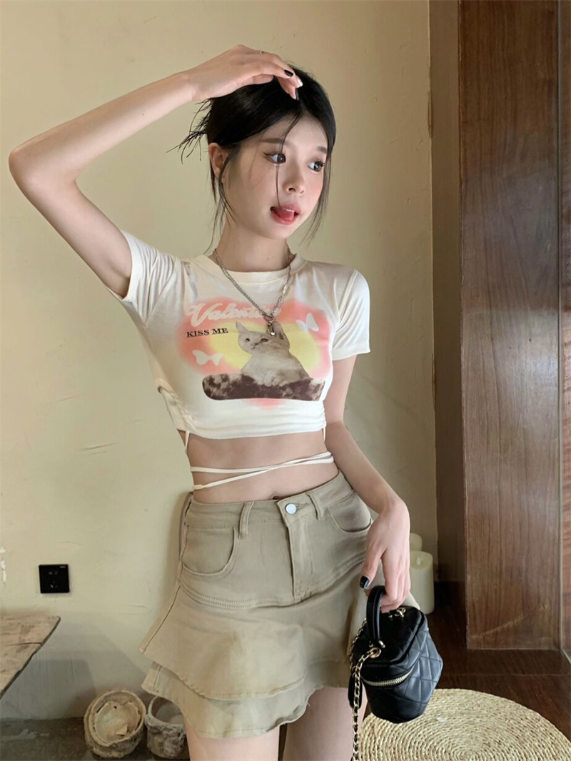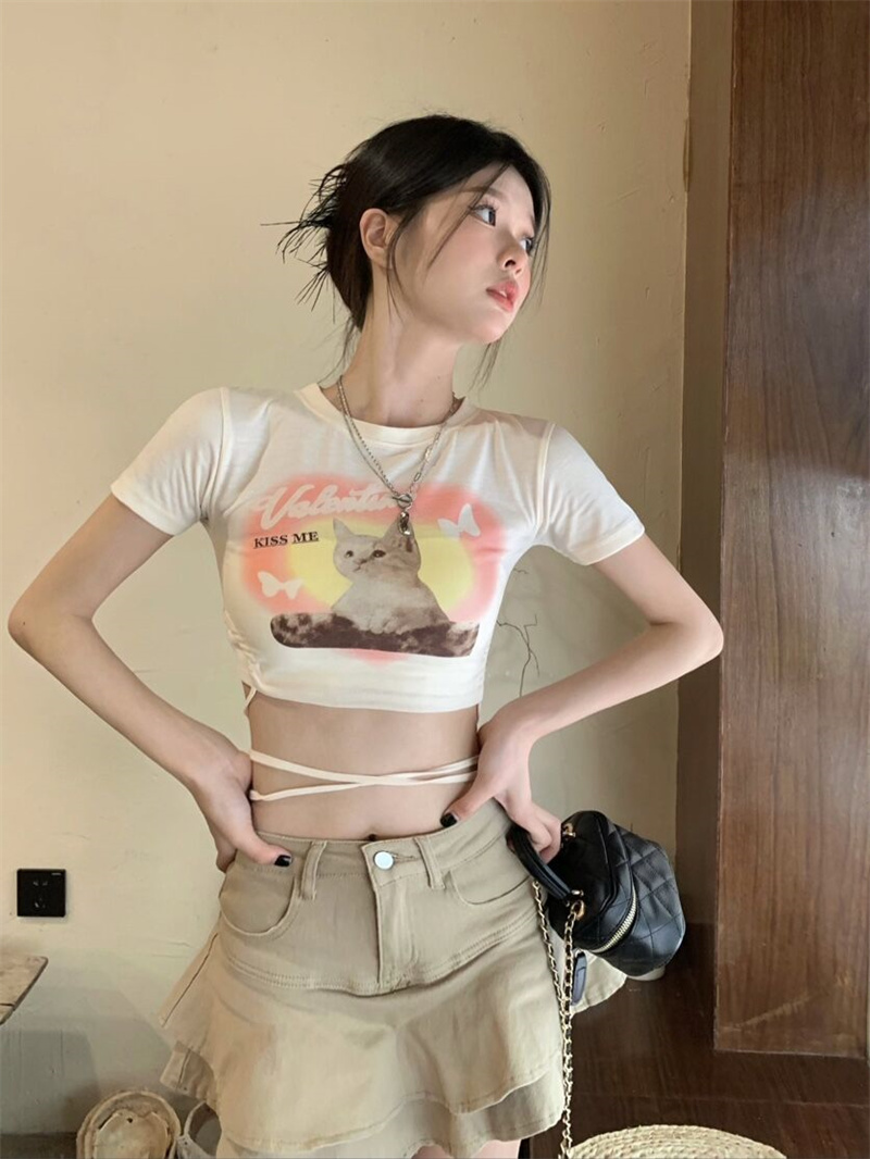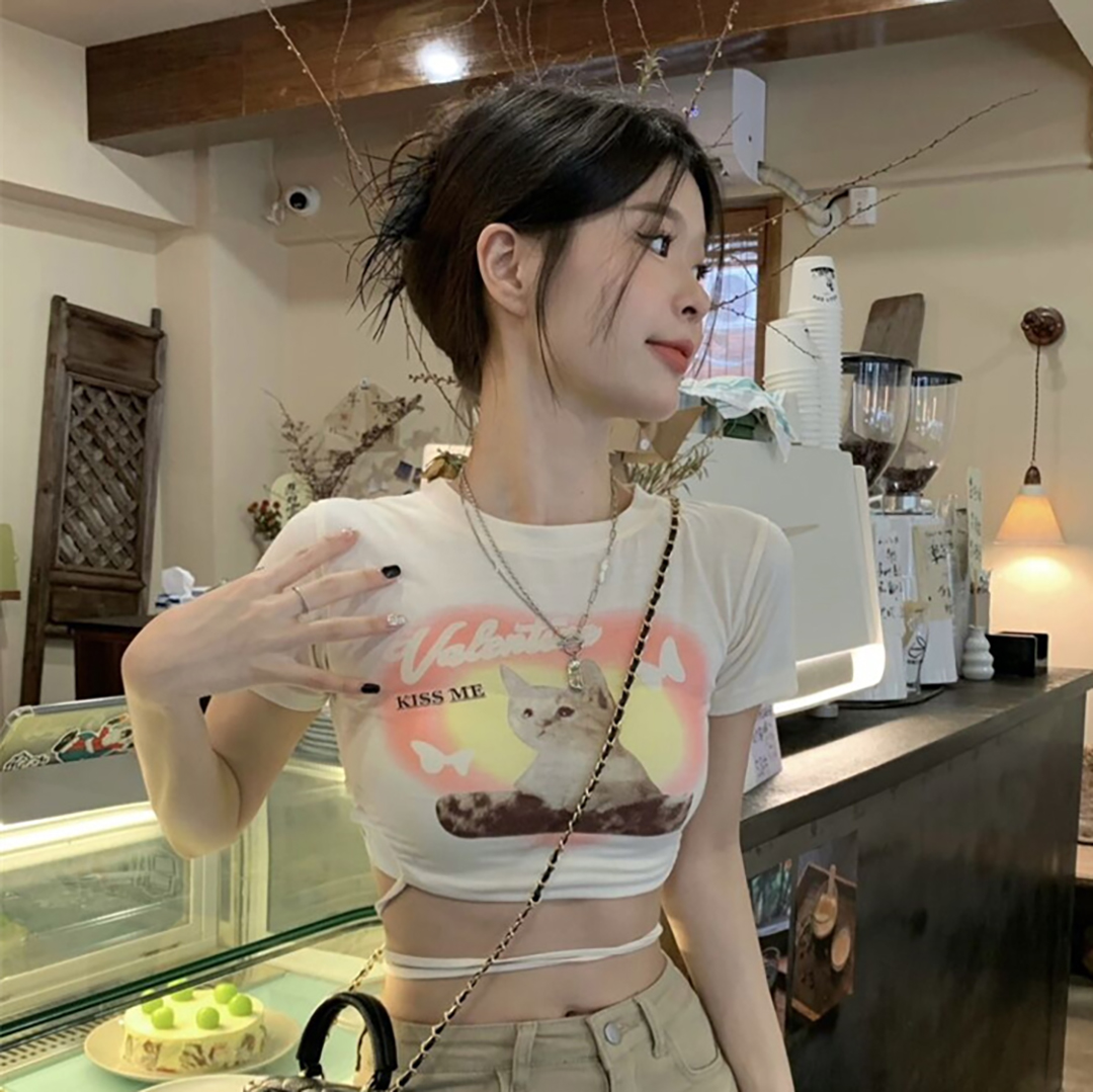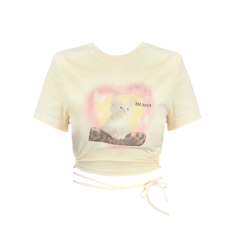 เสื้อครอปลายน้องเเมวตัวนี้ ดีไซน์ได้เก๋มากๆ เป็นเสื้อครอปเเบบมีโบว์ผูกเอว เนื้อผ้าดี ใส่ง่าย สบาย ขนาดพอดีตัว ไปจับคู่กับกระโปรงสั้น หรือกางเกงเอวสูงก็ปังสุดๆ สาวๆต้องมีติดตู้ไว้คนละตัวสองตัวเเล้วเเหละะ บอกเลยปังเเน่นอนน |