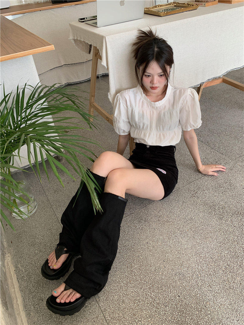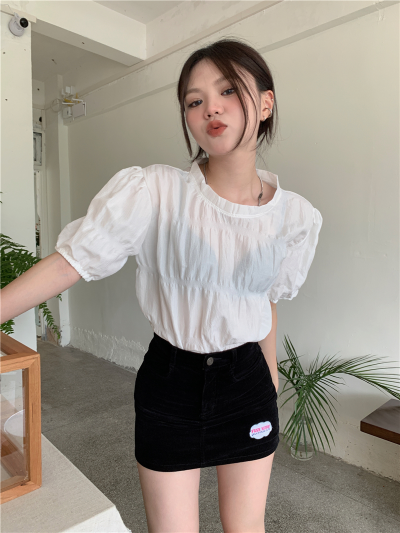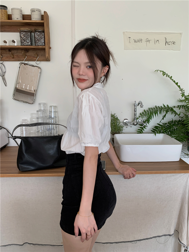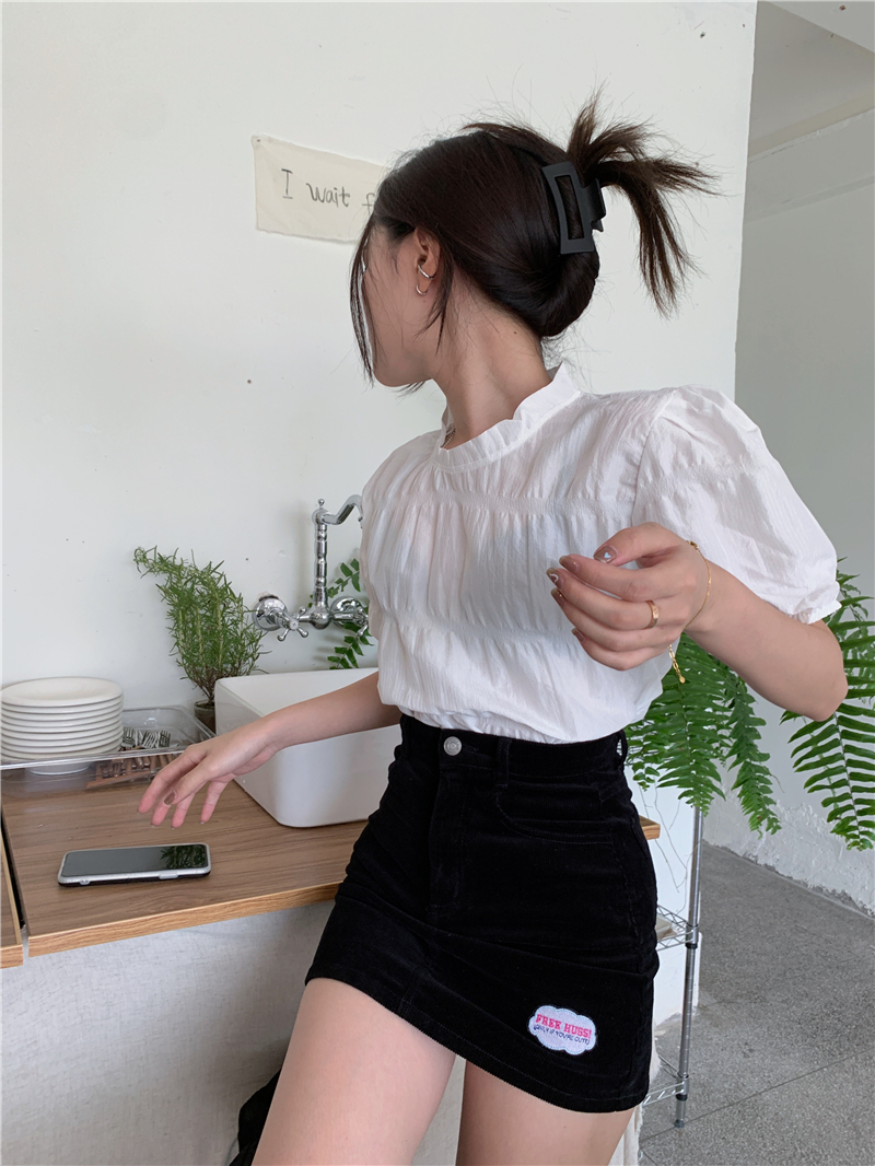 เสื้อแขนสั้นผ้านออกแนวซีทรู เปิดข้างในเล็กๆ น้องรุ่นนี้เหมือนเป็นงานเรียบเรียบแต่แฝงความเซ็กซี่เอาไว้ คอเสื้อเป็นคอจีนตั้งแบบมินิมอลล์ แมตช์คู่กับกระโปรงสีดำ ผ้าเป็นงานบางๆโชว์ข้างในเก๋ๆๆ เหมือนจะเรียบร้อยแต่แอบแซ่บอยู่นะใครได้ไปรับรองจึ้ง |