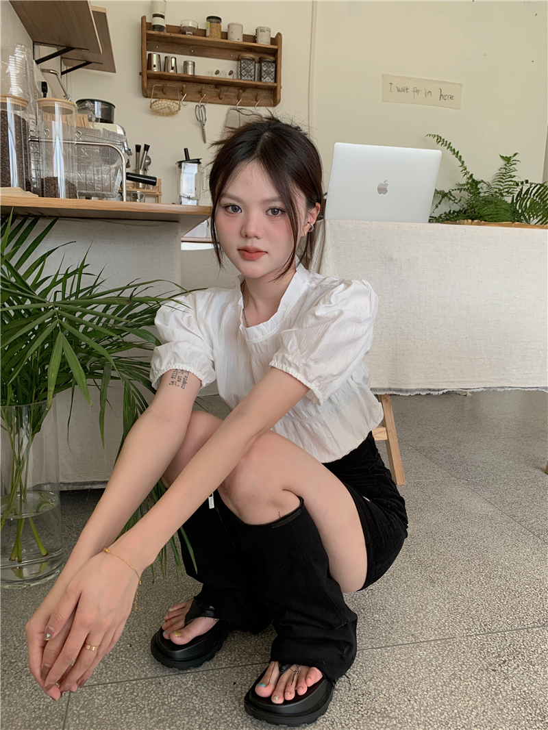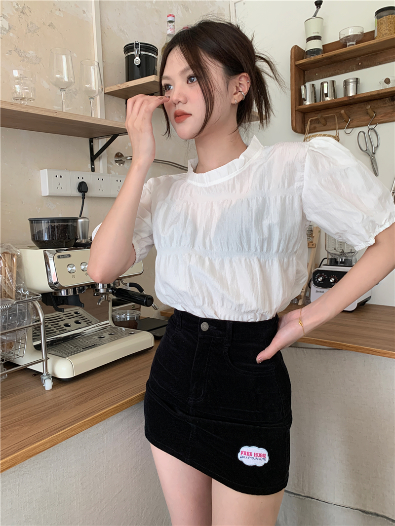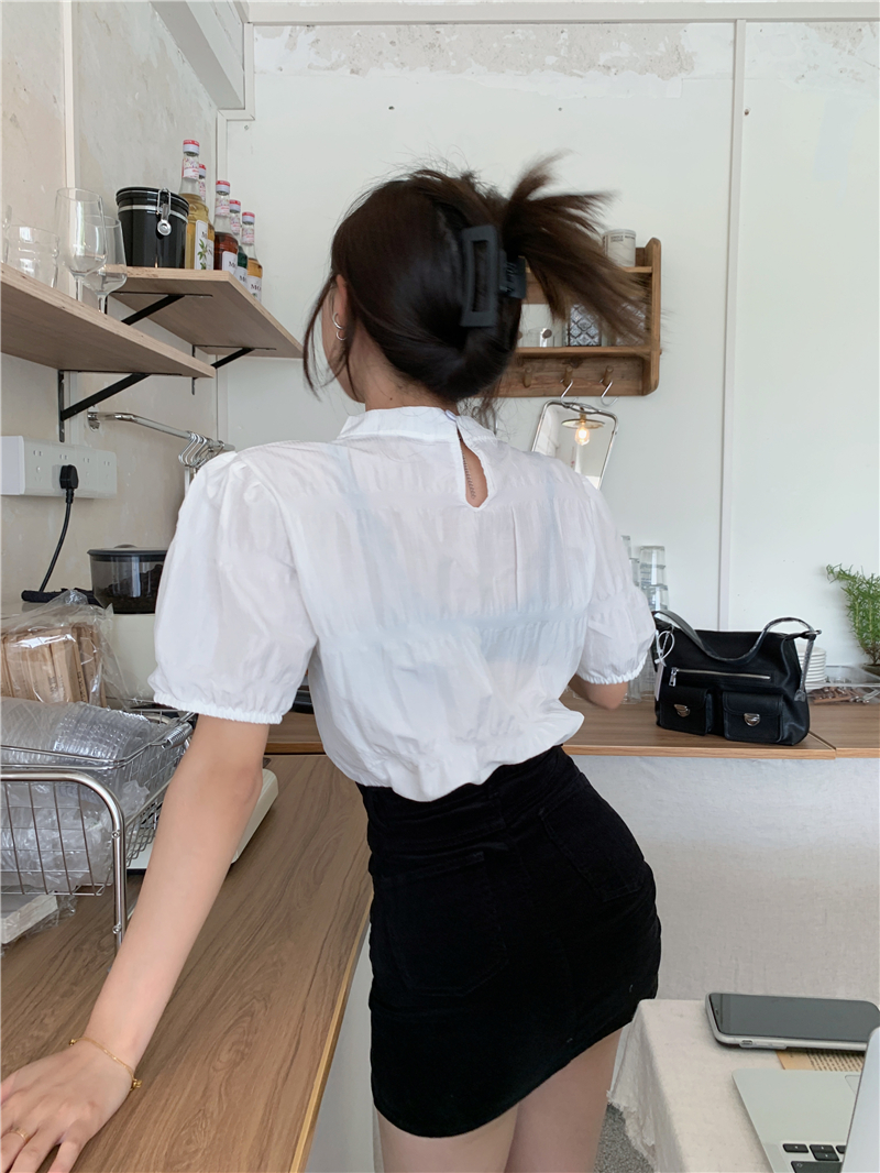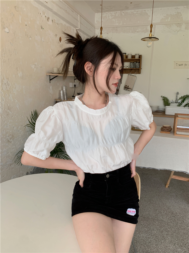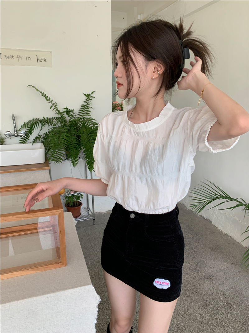 เสื้อแขนสั้นผ้านออกแนวซีทรู เปิดข้างในเล็กๆ น้องรุ่นนี้เหมือนเป็นงานเรียบเรียบแต่แฝงความเซ็กซี่เอาไว้ คอเสื้อเป็นคอจีนตั้งแบบมินิมอลล์ แมตช์คู่กับกระโปรงสีดำ ผ้าเป็นงานบางๆโชว์ข้างในเก๋ๆๆ เหมือนจะเรียบร้อยแต่แอบแซ่บอยู่นะใครได้ไปรับรองจึ้ง |