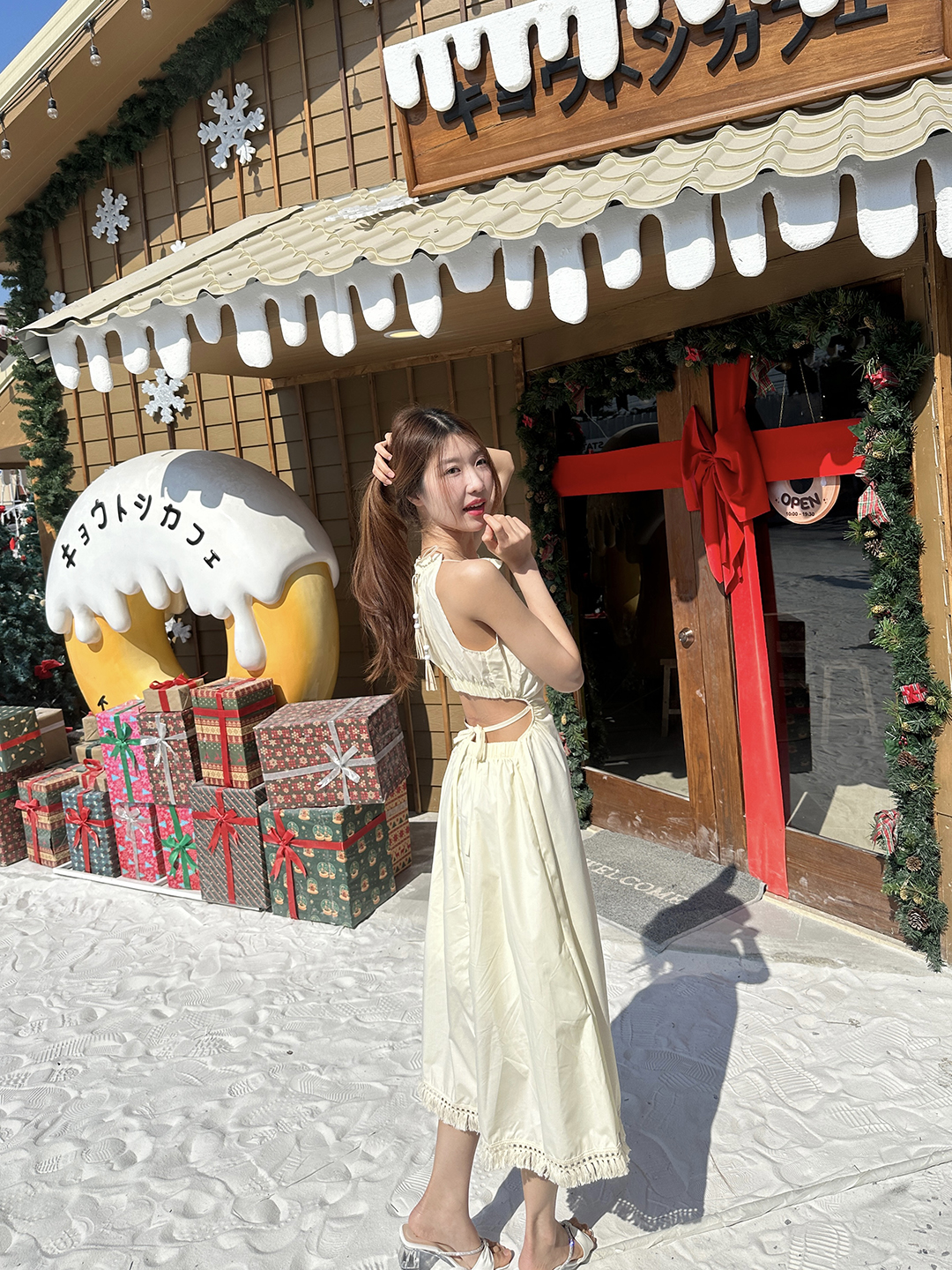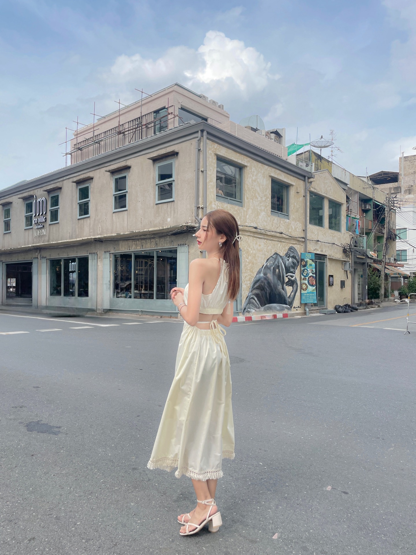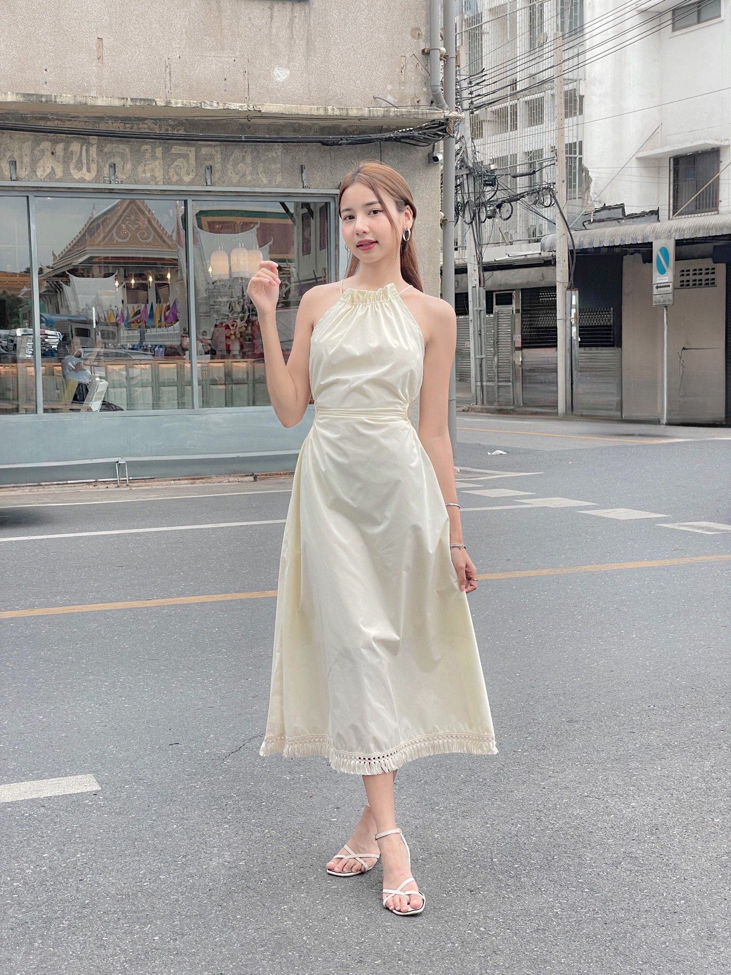 เดรสแขนกุดเปิดหลังสีครีม มีดีเทลเป็นสายผูกหลังแบบเก๋ๆ ผ้าเนื้อนิ่มใส่พริ้วๆได้เลยตัวเดียวจบ สีครีมอ่อนๆใส่แล้วขับผิวค่ะ |