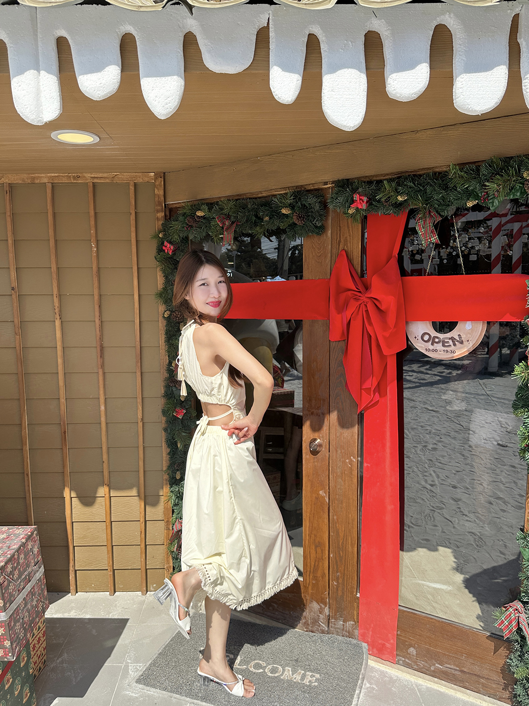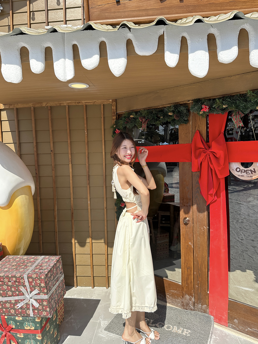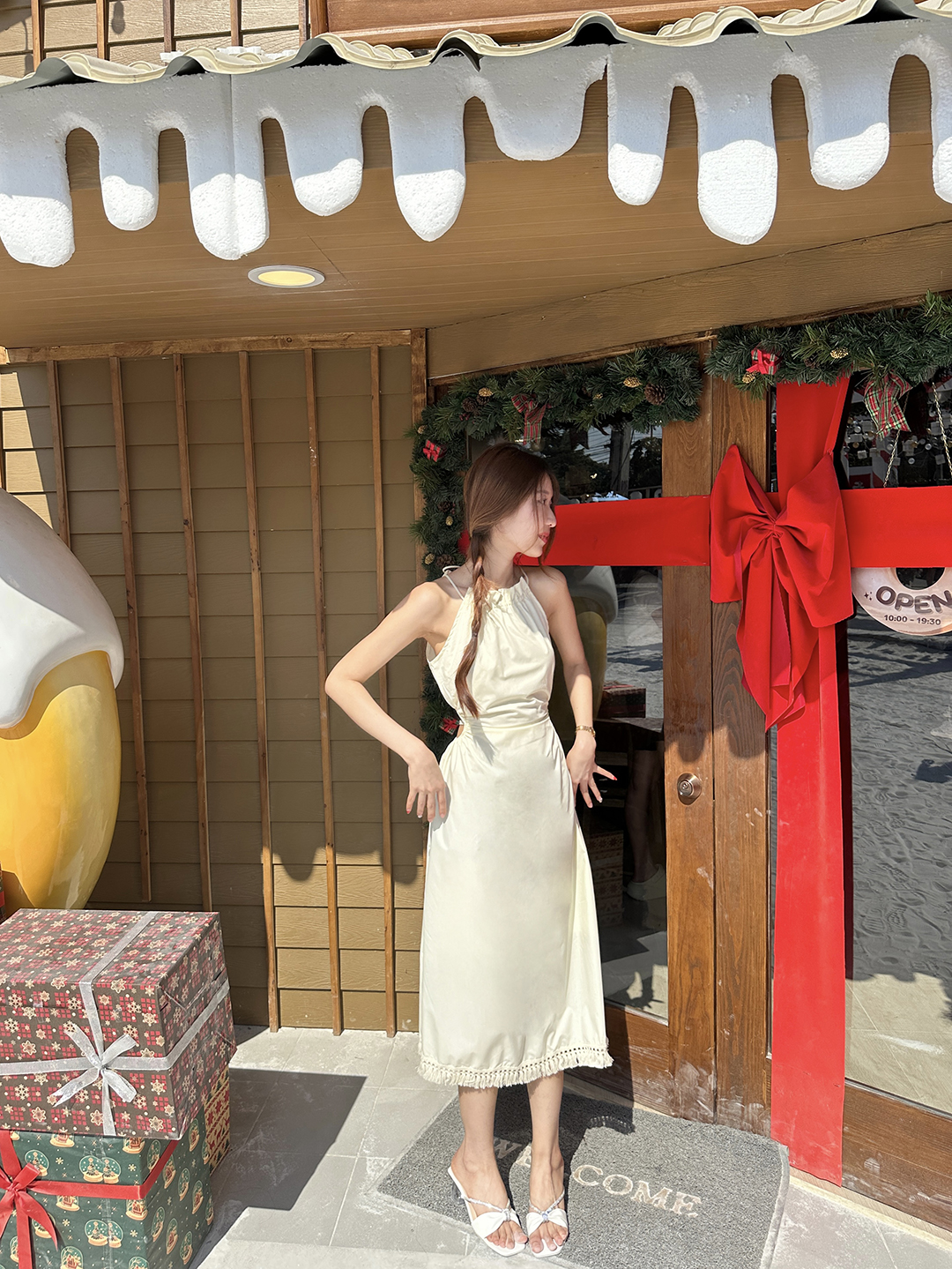 เดรสแขนกุดเปิดหลังสีครีม มีดีเทลเป็นสายผูกหลังแบบเก๋ๆ ผ้าเนื้อนิ่มใส่พริ้วๆได้เลยตัวเดียวจบ สีครีมอ่อนๆใส่แล้วขับผิวค่ะ |