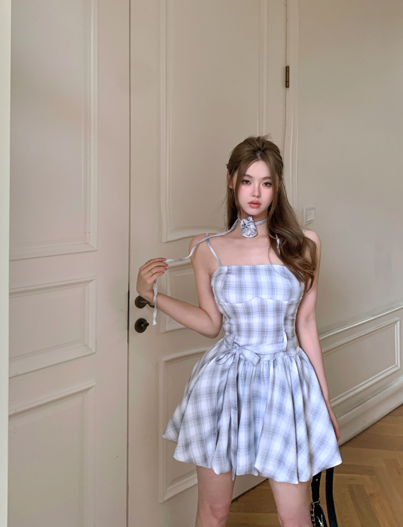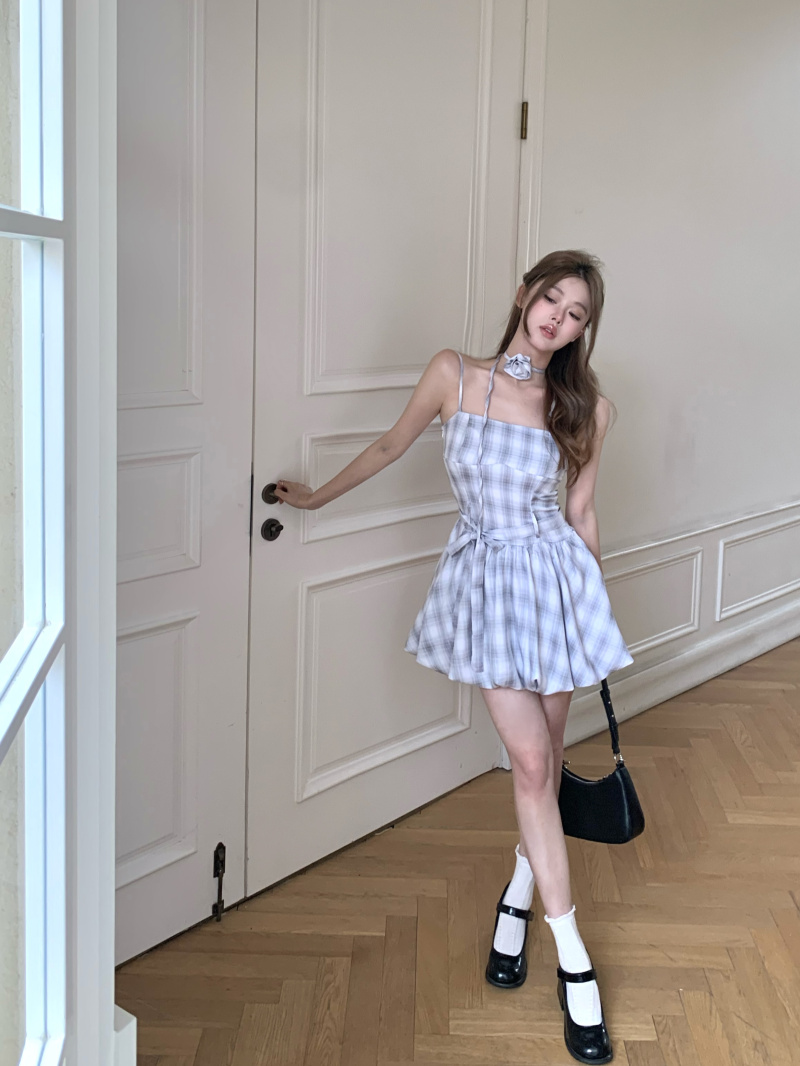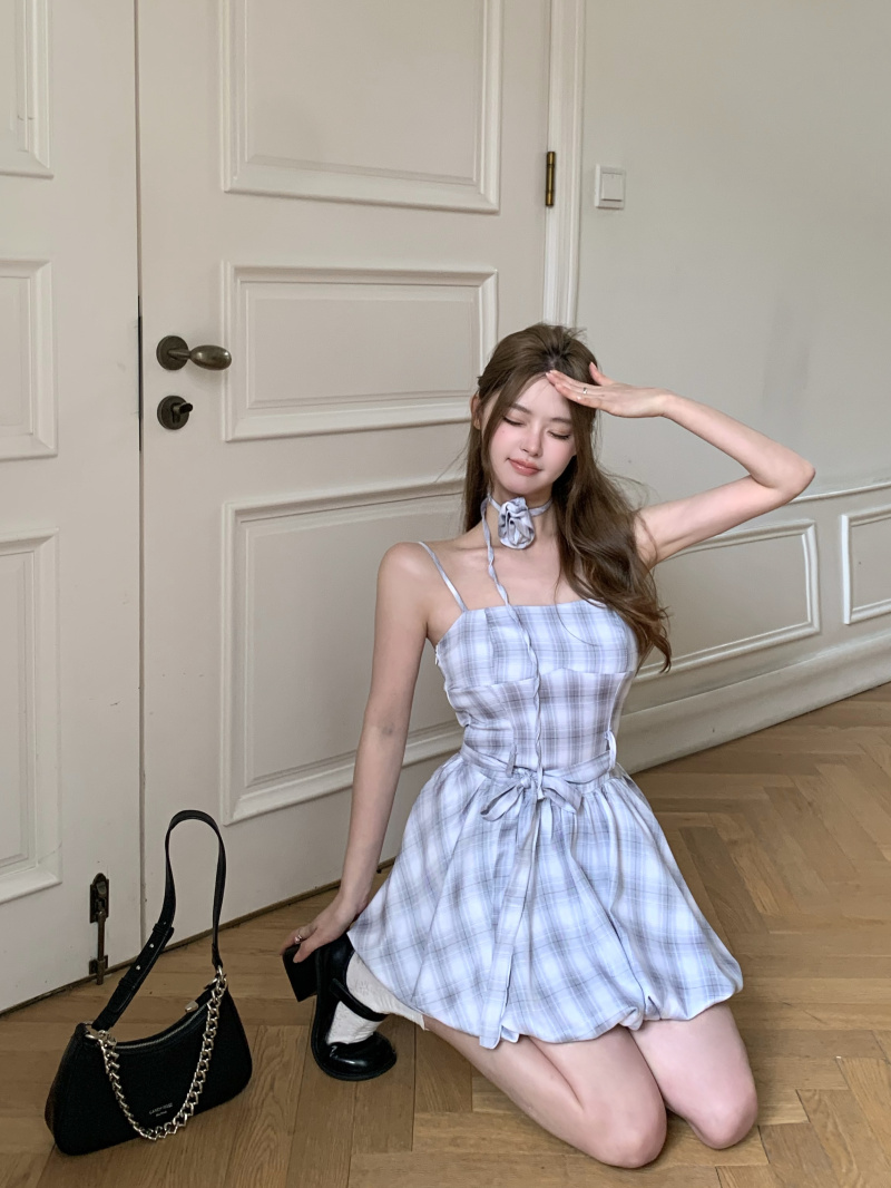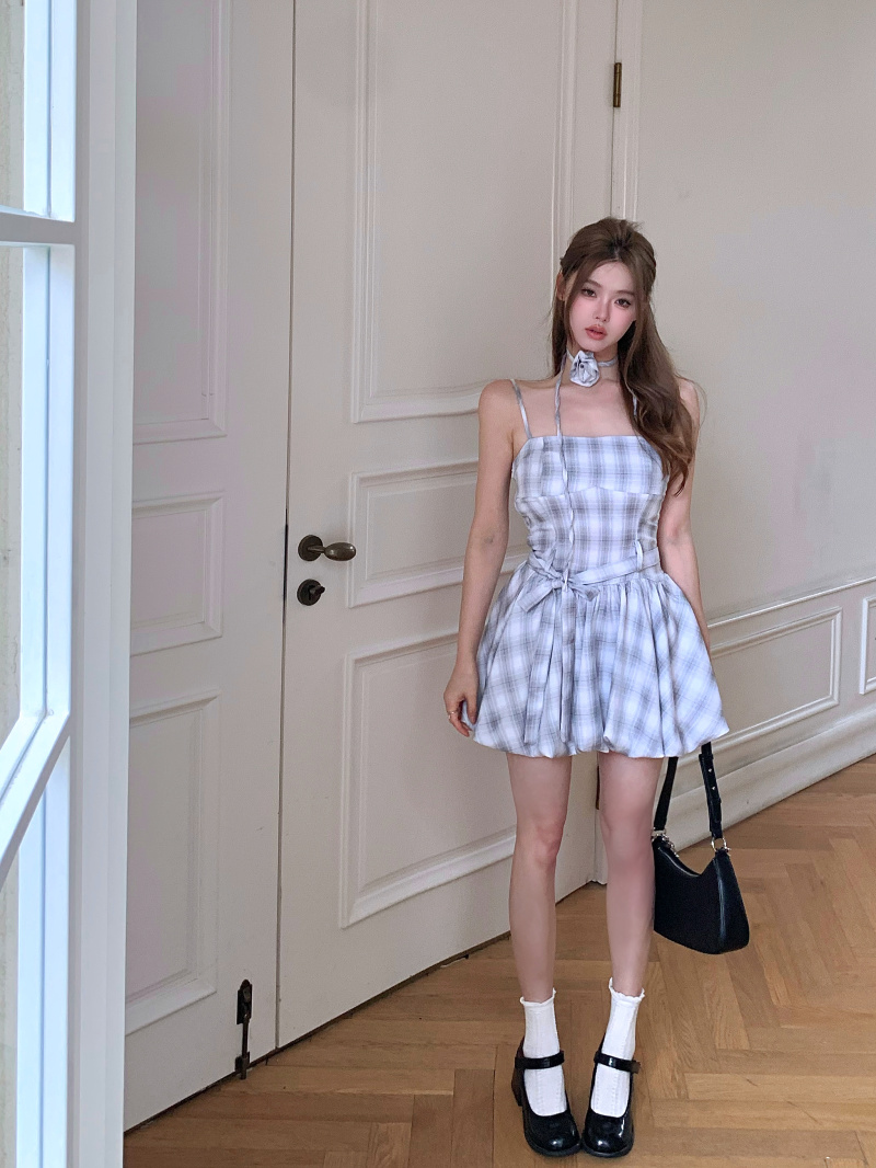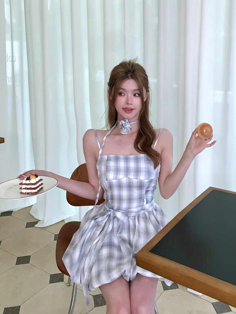 เดรสสายเดี่ยวผ้าฃายสก็อตทรงสวยมาก น้องเป็นงานมีผ้าผูกโบว์น่ารักๆตรงเอว ช่วงคอเป็นผ้าลายกุหลาบเอาผูกเป็นเครื่องประดับหรือจะเอาผูกตรงเอวเก๋ๆก็ได้น้า รับประกันความคิ๊วท์แน่นอนค่า