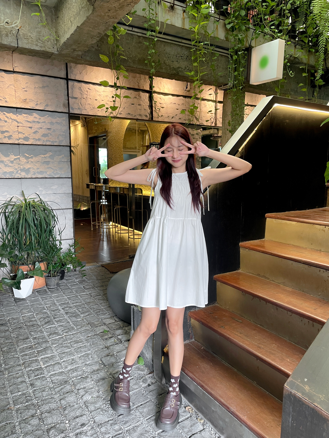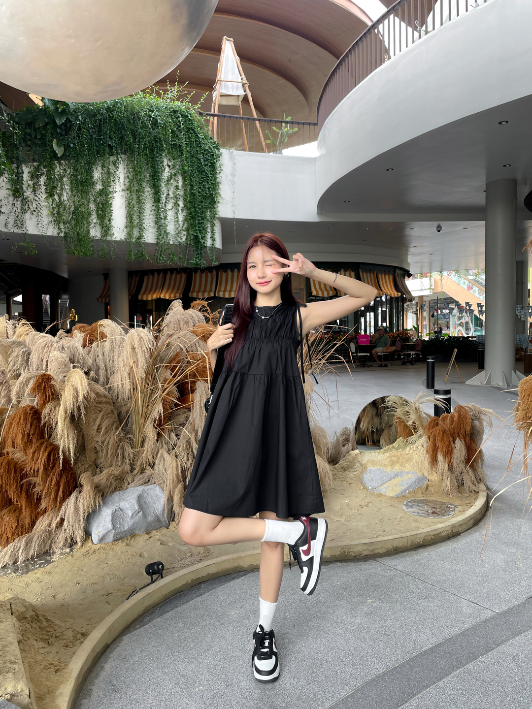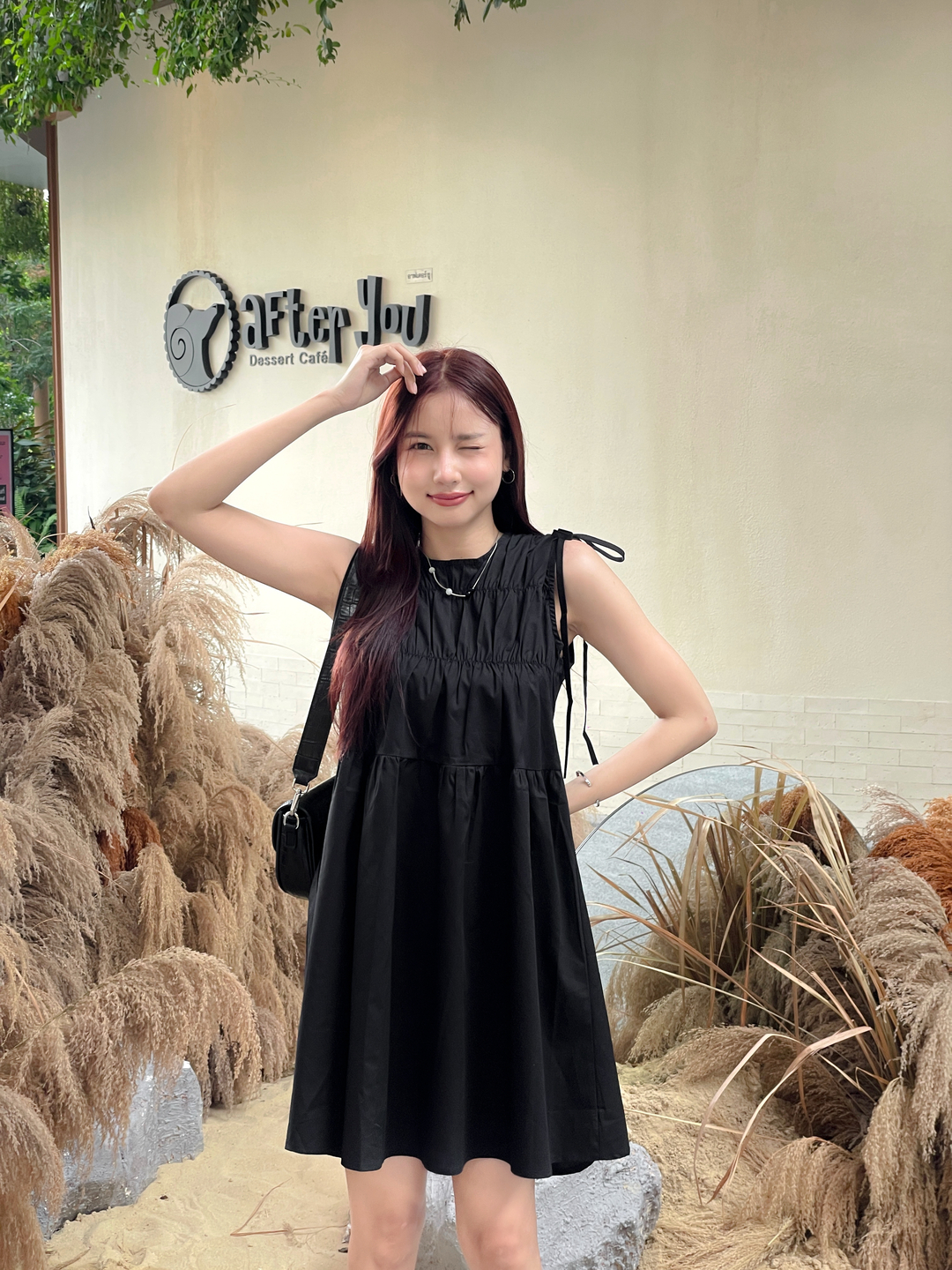 เดรสแขนกุดทรงหลวม ดีไซน์น่ารักด้วยดีเทลริบบิ้นผูกไหล่เดรสแขนกุดทรงหลวม ดีไซน์น่ารักด้วยดีเทลริบบิ้นผูกไหล่ เนื้อผ้านุ่มใส่สบาย ระบายอากาศดี เหมาะกับอากาศเมืองไทย ใส่ได้ทั้งวันสบาย ๆ หรือแมทช์กับกระเป๋า/รองเท้าให้ลุคเกาหลีมินิมอลสุดชิค