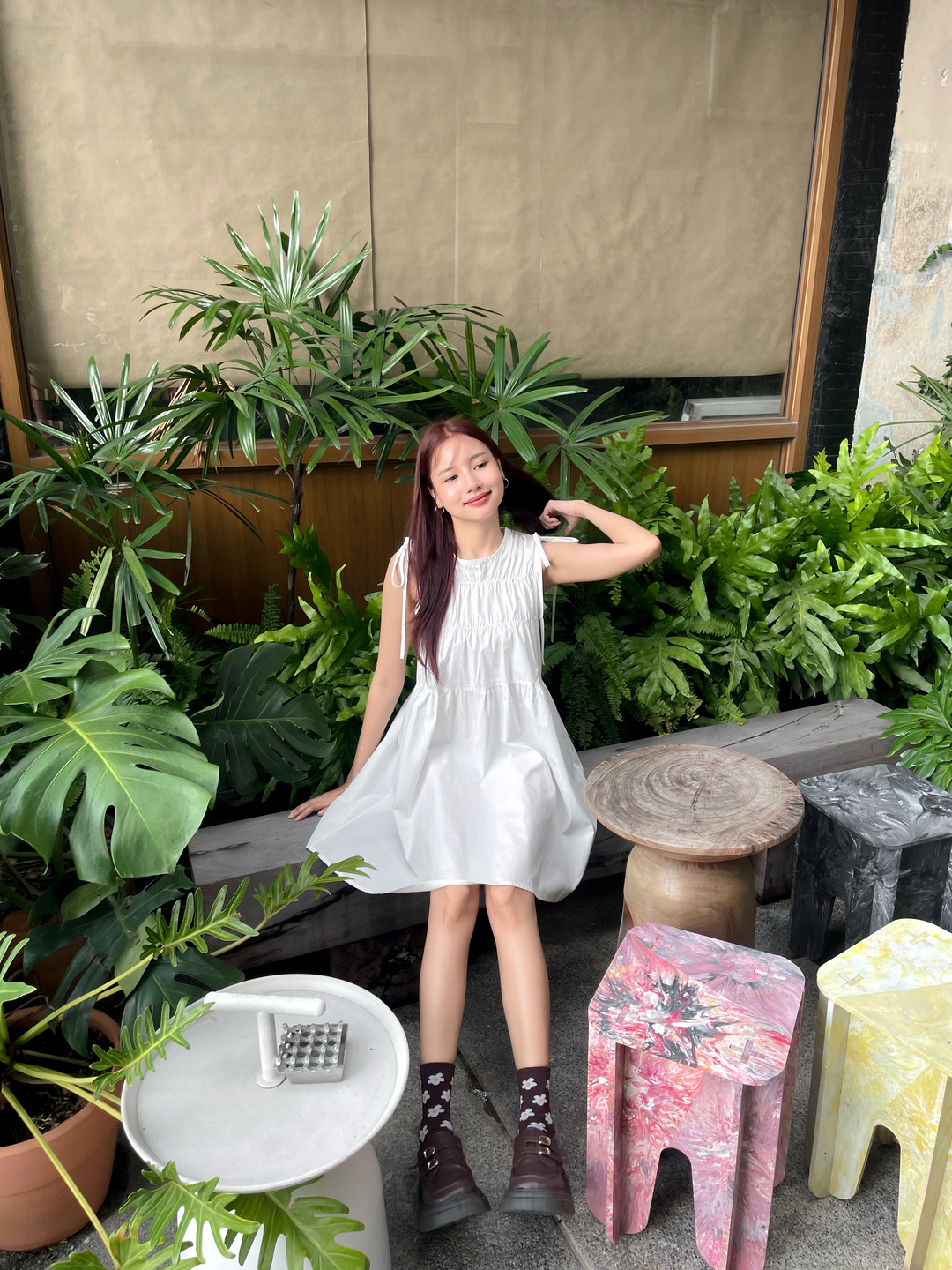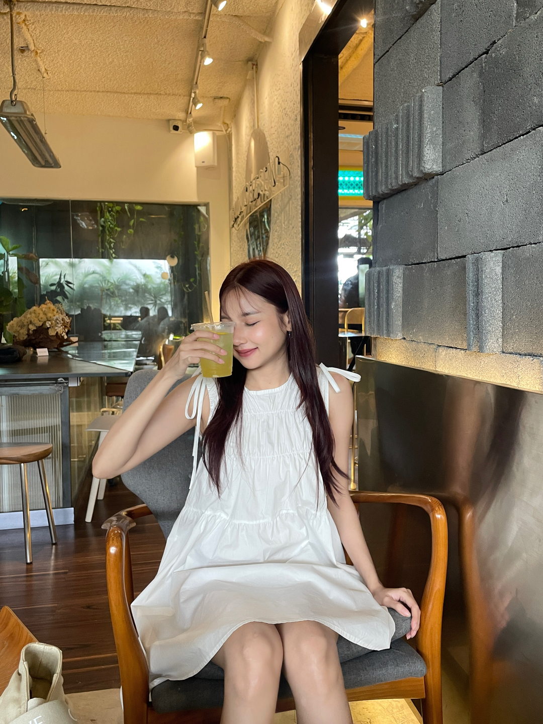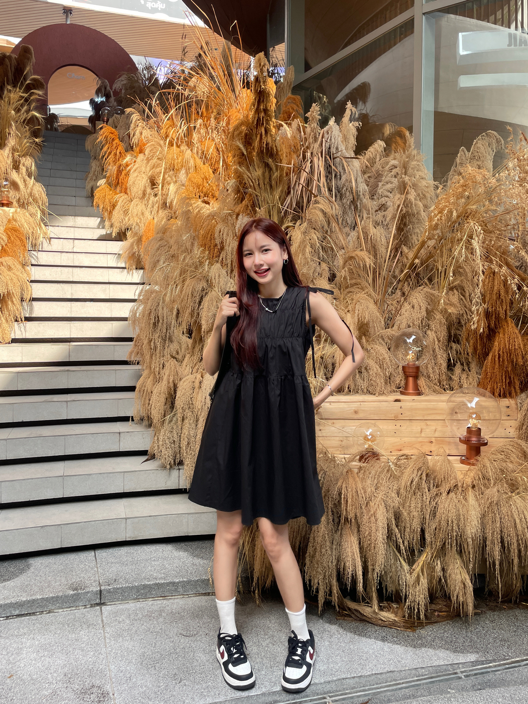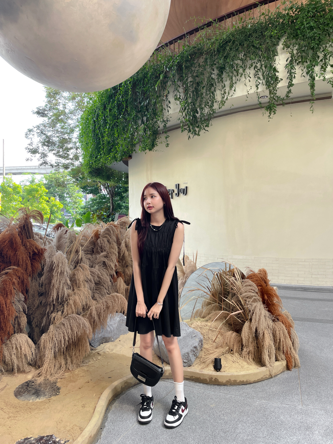 เดรสแขนกุดทรงหลวม ดีไซน์น่ารักด้วยดีเทลริบบิ้นผูกไหล่เดรสแขนกุดทรงหลวม ดีไซน์น่ารักด้วยดีเทลริบบิ้นผูกไหล่ เนื้อผ้านุ่มใส่สบาย ระบายอากาศดี เหมาะกับอากาศเมืองไทย ใส่ได้ทั้งวันสบาย ๆ หรือแมทช์กับกระเป๋า/รองเท้าให้ลุคเกาหลีมินิมอลสุดชิค